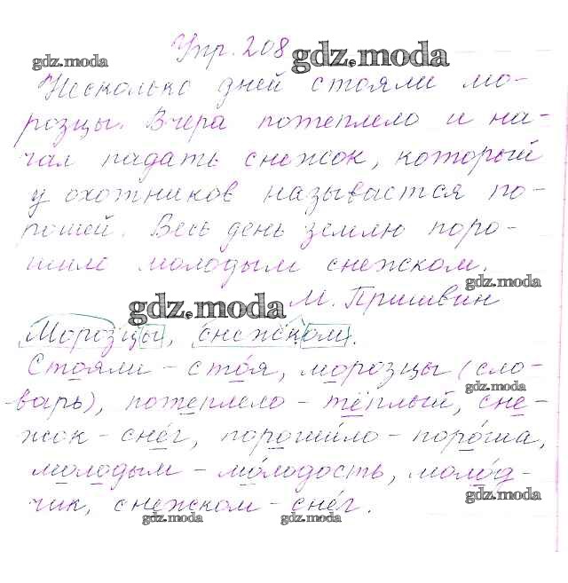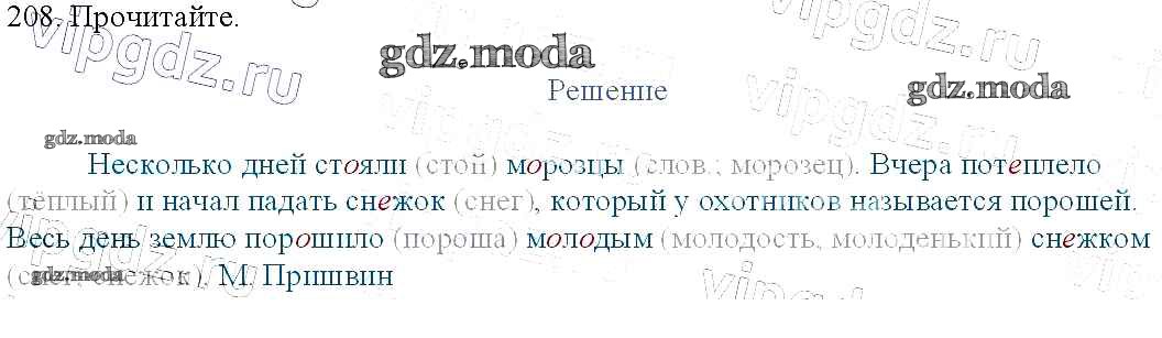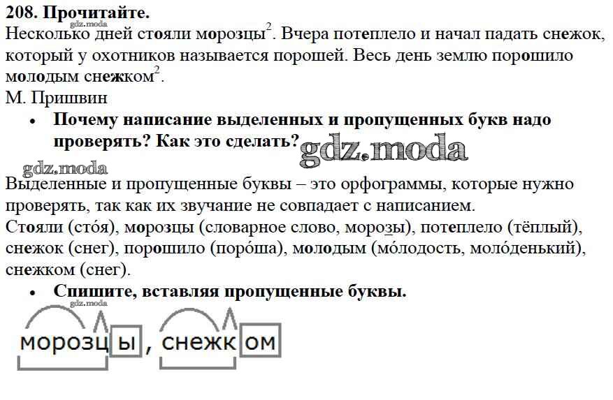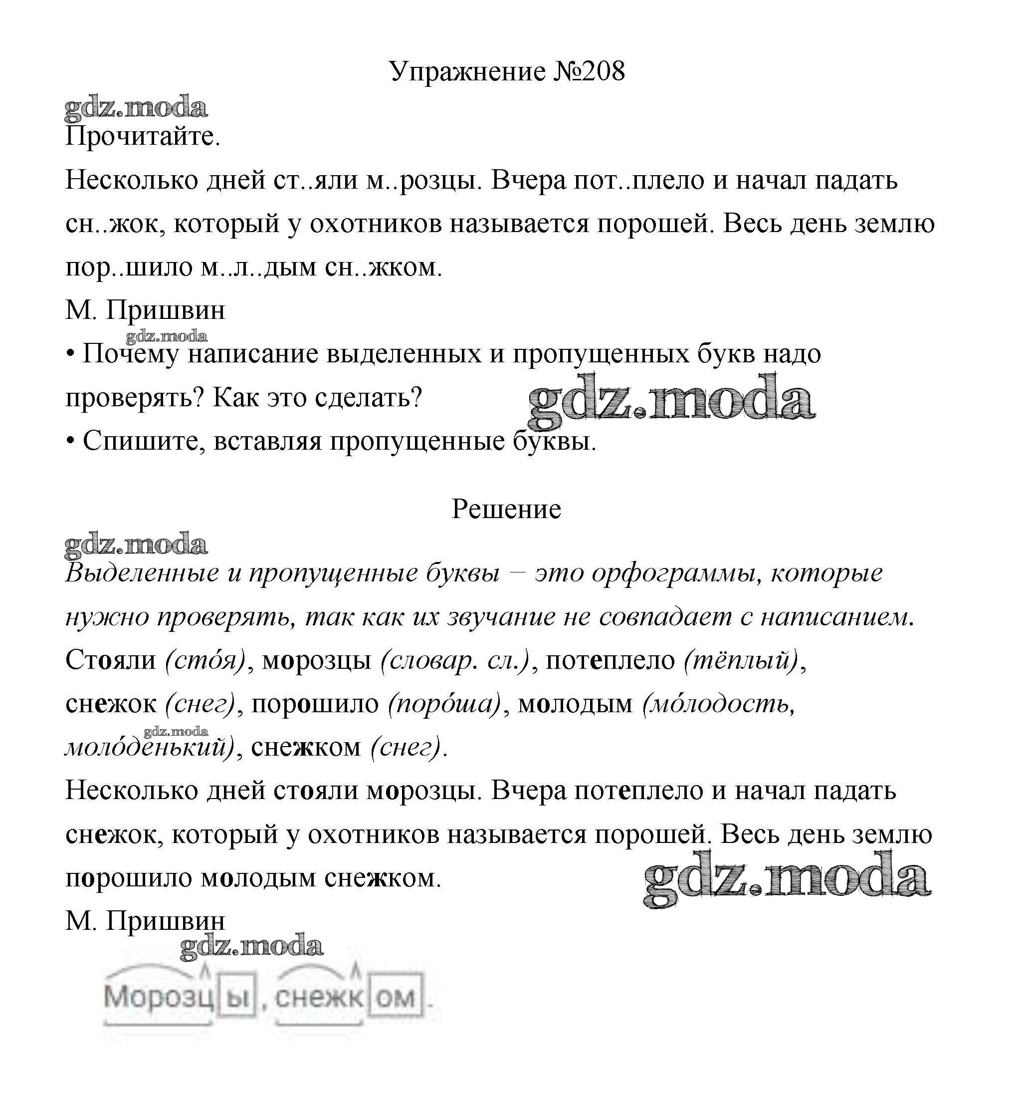 ОТВЕТ на задание № 208 Учебник по Русскому языку 3 класс Канакина Школа России