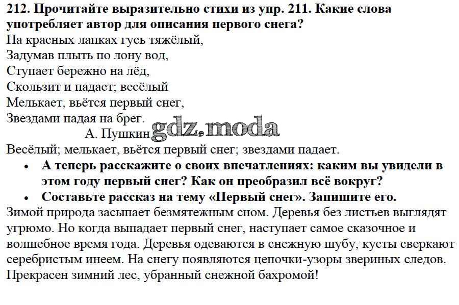 ОТВЕТ на задание № 212 Учебник по Русскому языку 3 класс Канакина Школа России