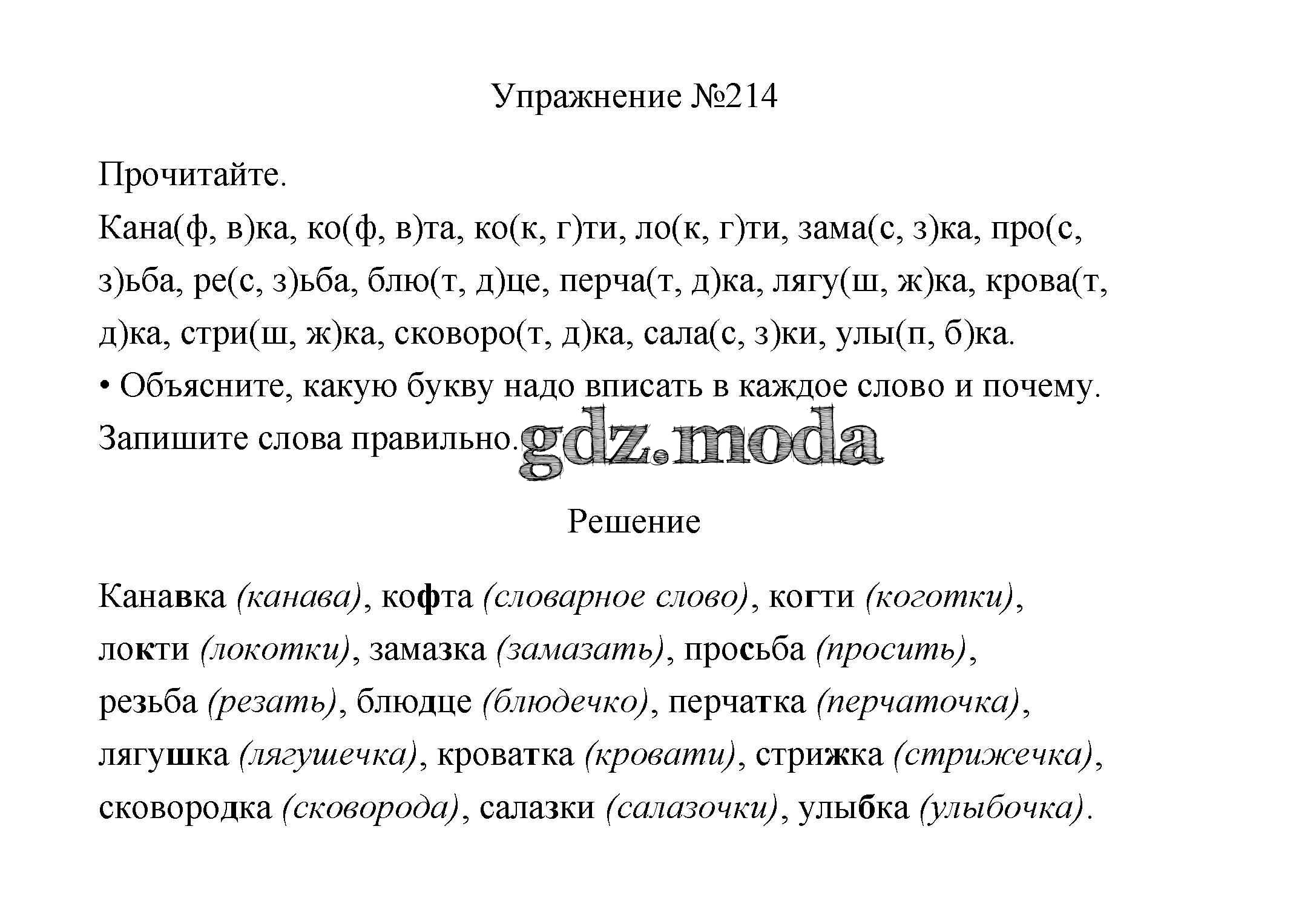 ОТВЕТ на задание № 214 Учебник по Русскому языку 3 класс Канакина Школа России