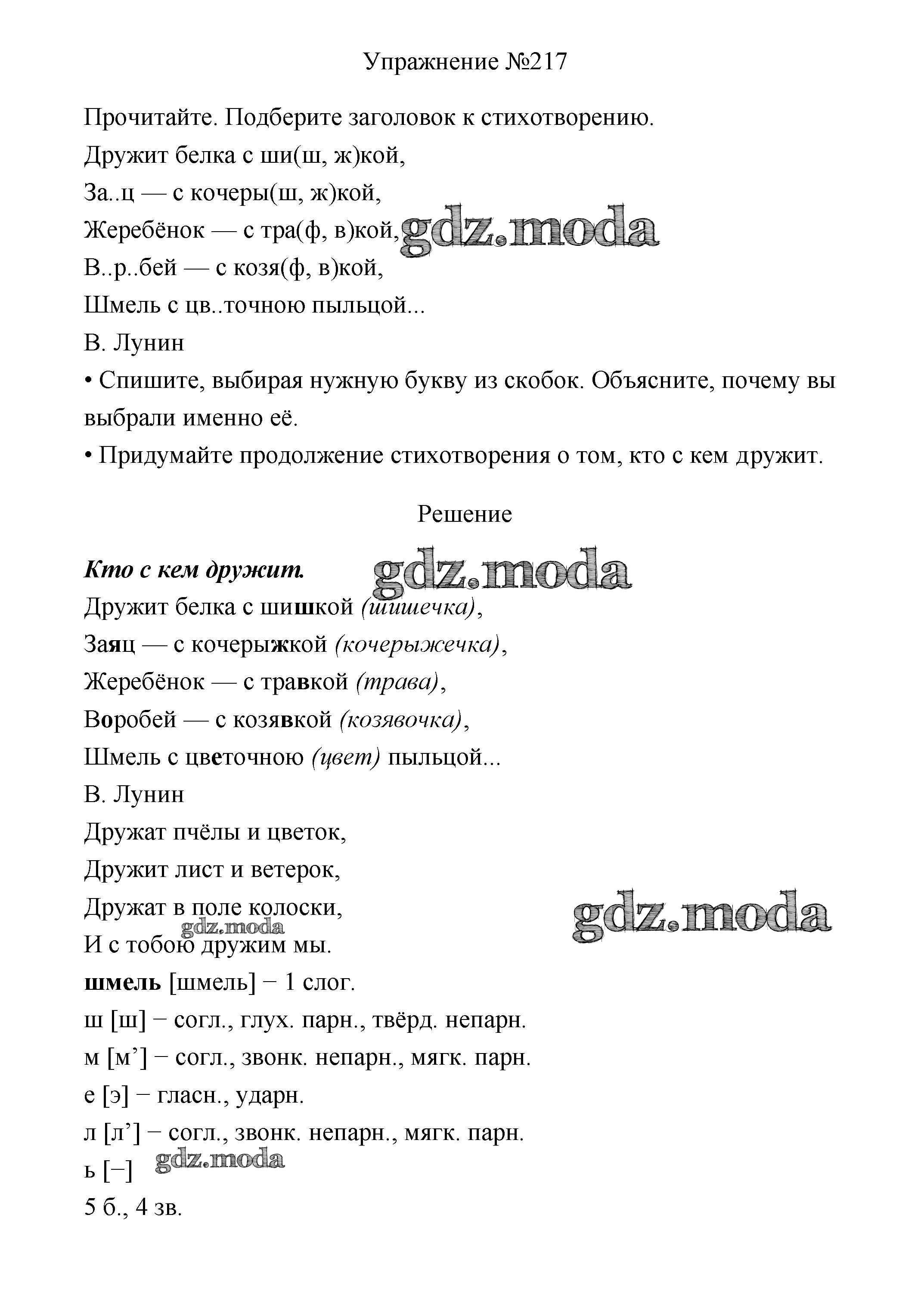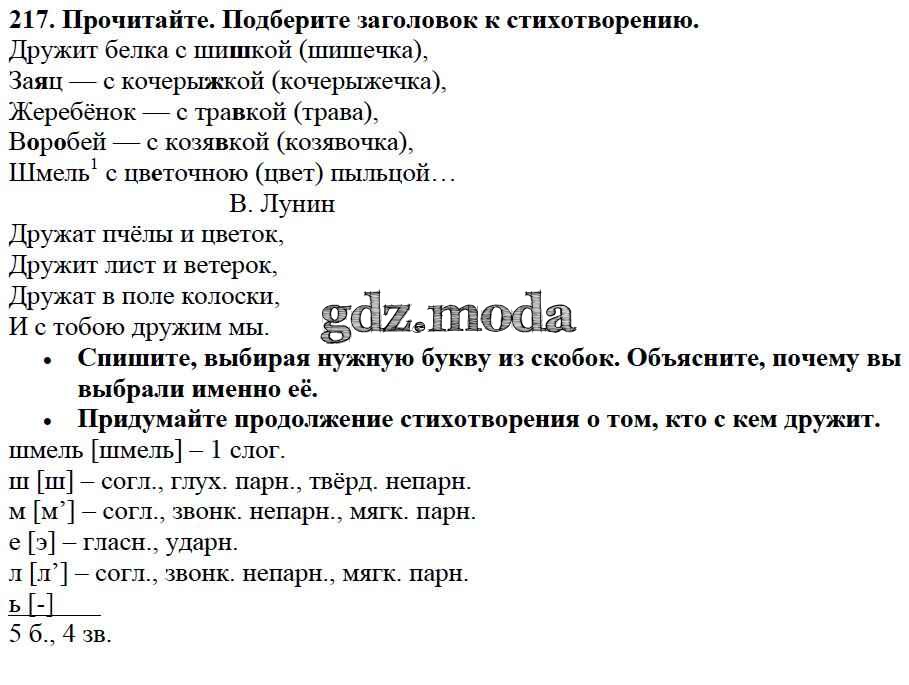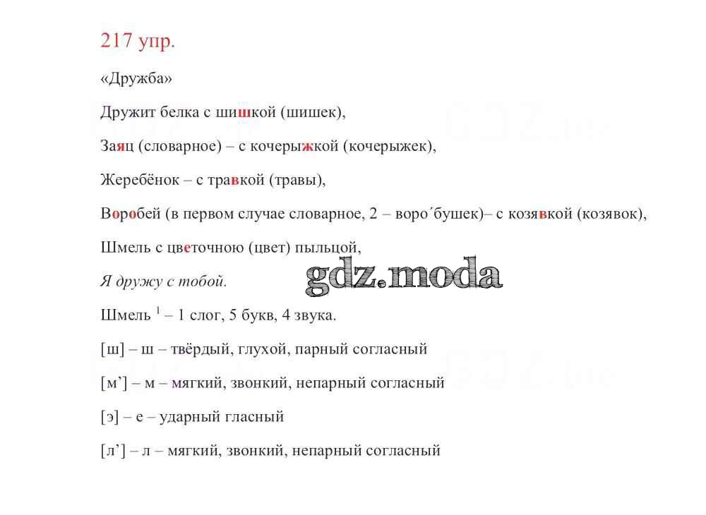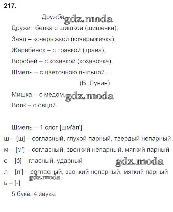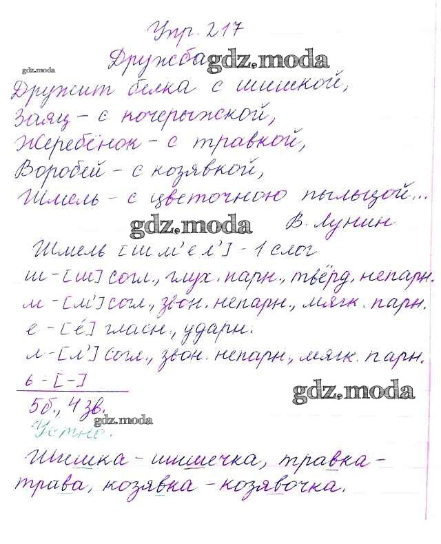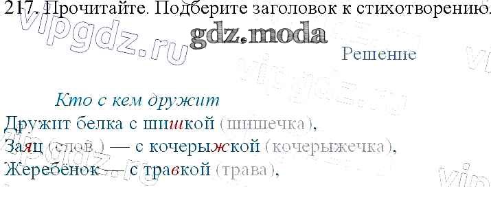 ОТВЕТ на задание № 217 Учебник по Русскому языку 3 класс Канакина Школа России