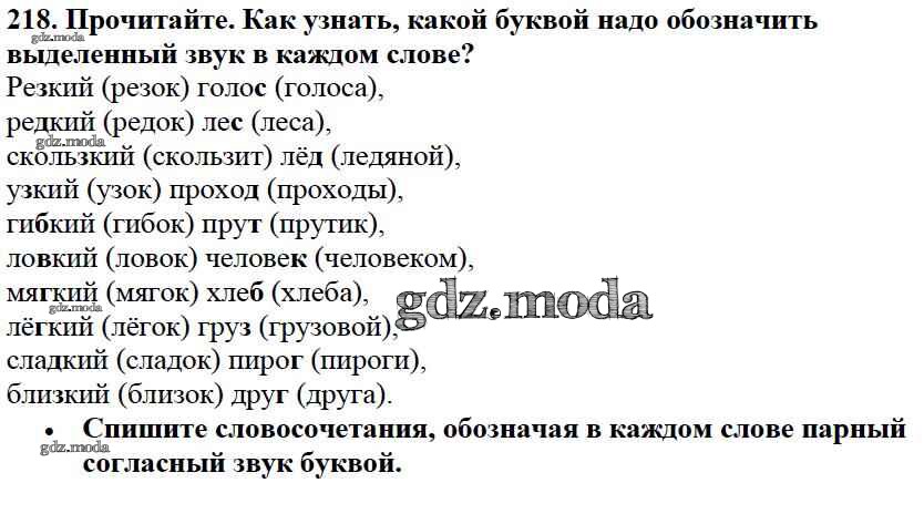 ОТВЕТ на задание № 218 Учебник по Русскому языку 3 класс Канакина Школа России