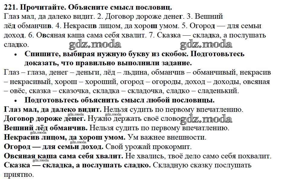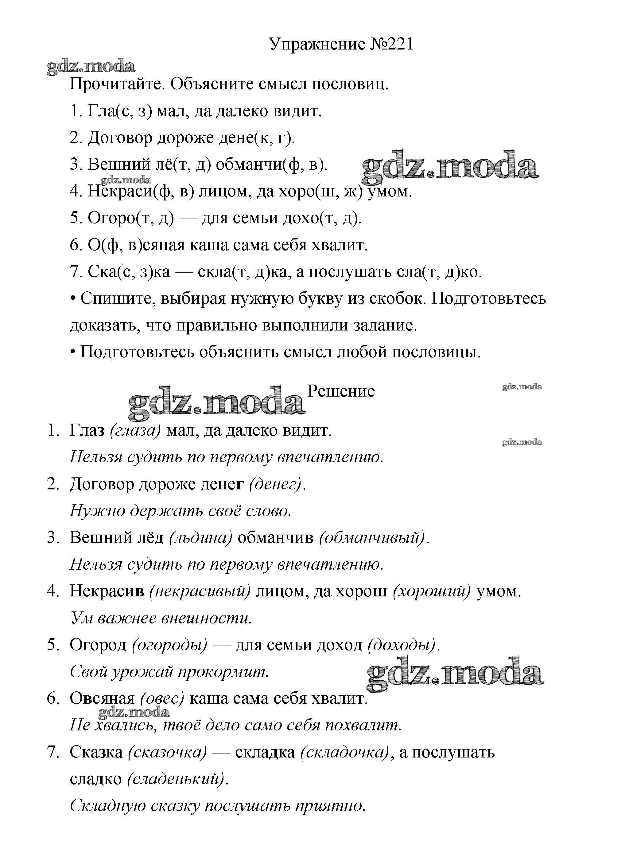 ОТВЕТ на задание № 221 Учебник по Русскому языку 3 класс Канакина Школа России