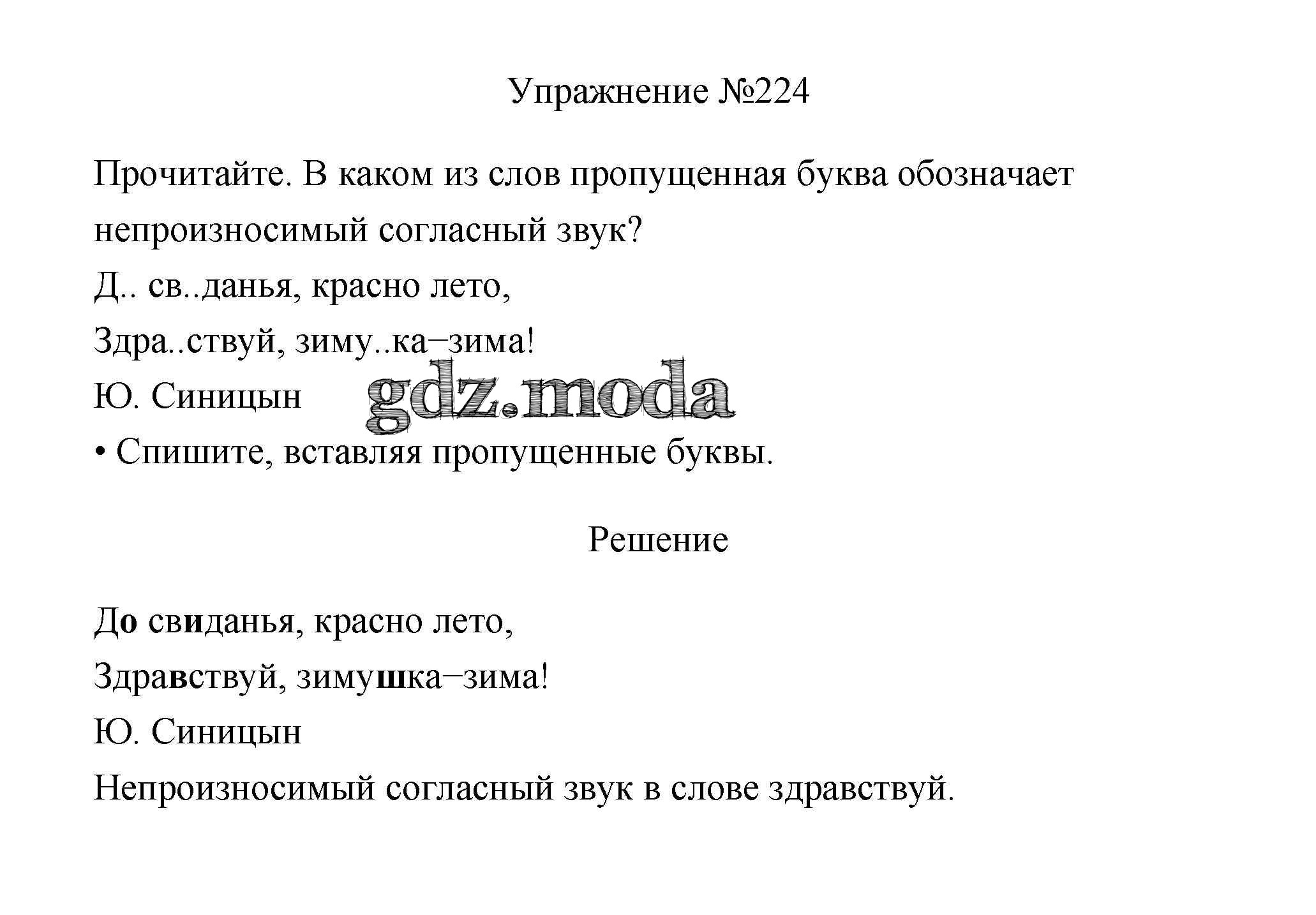 ОТВЕТ на задание № 224 Учебник по Русскому языку 3 класс Канакина Школа России