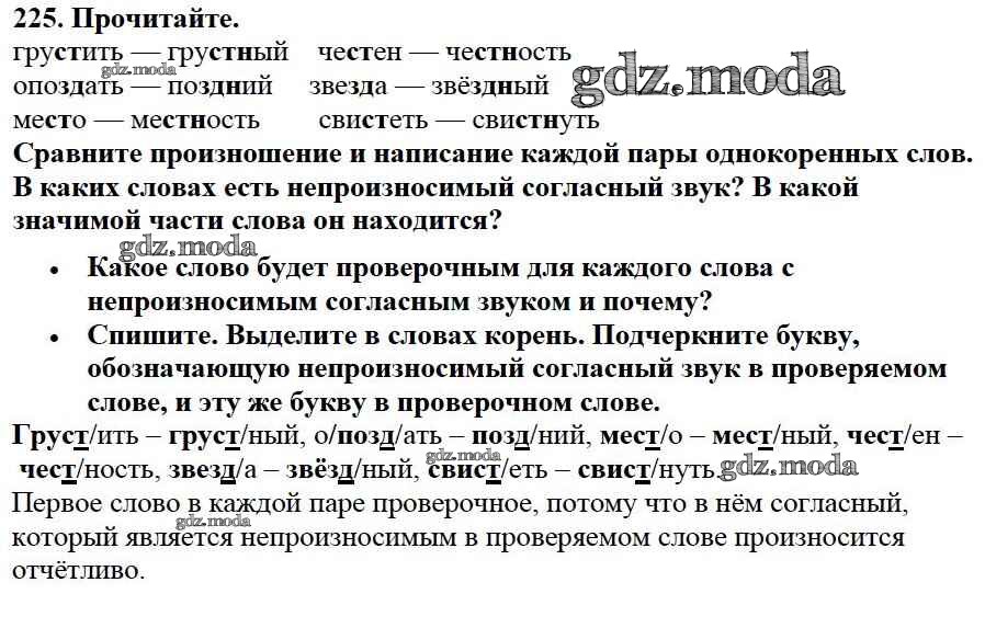 ОТВЕТ на задание № 225 Учебник по Русскому языку 3 класс Канакина Школа России