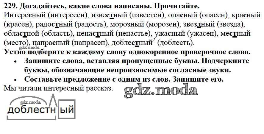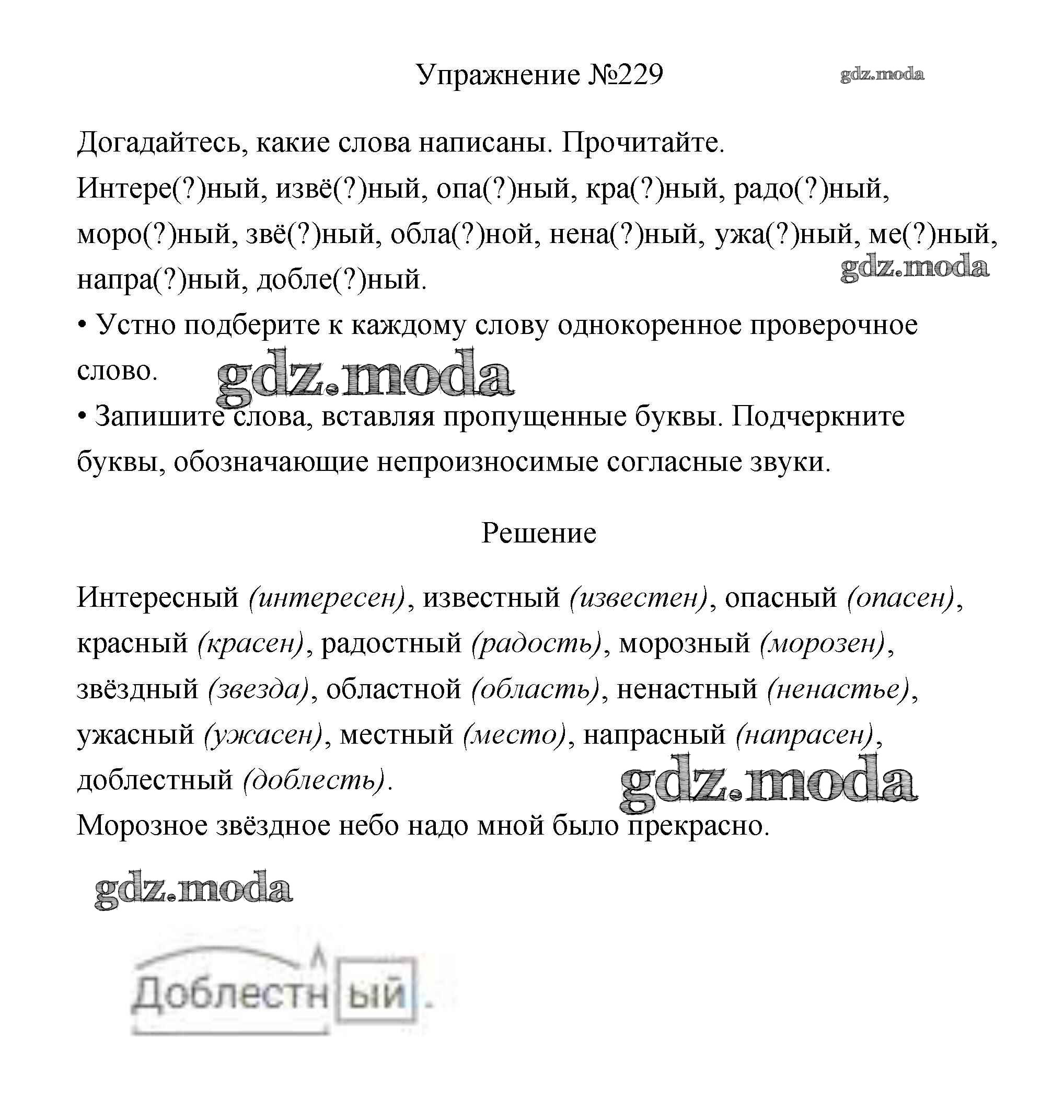 ОТВЕТ на задание № 229 Учебник по Русскому языку 3 класс Канакина Школа России