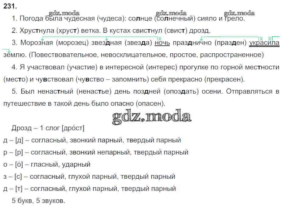 ОТВЕТ на задание № 231 Учебник по Русскому языку 3 класс Канакина Школа России