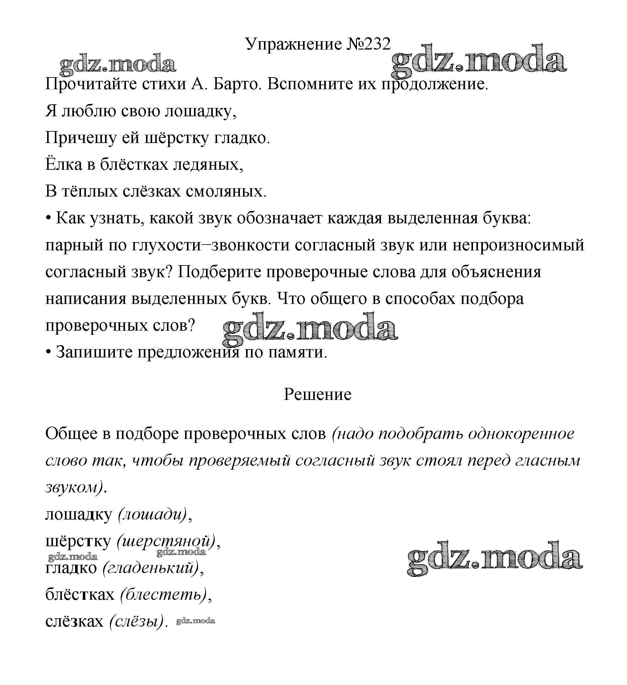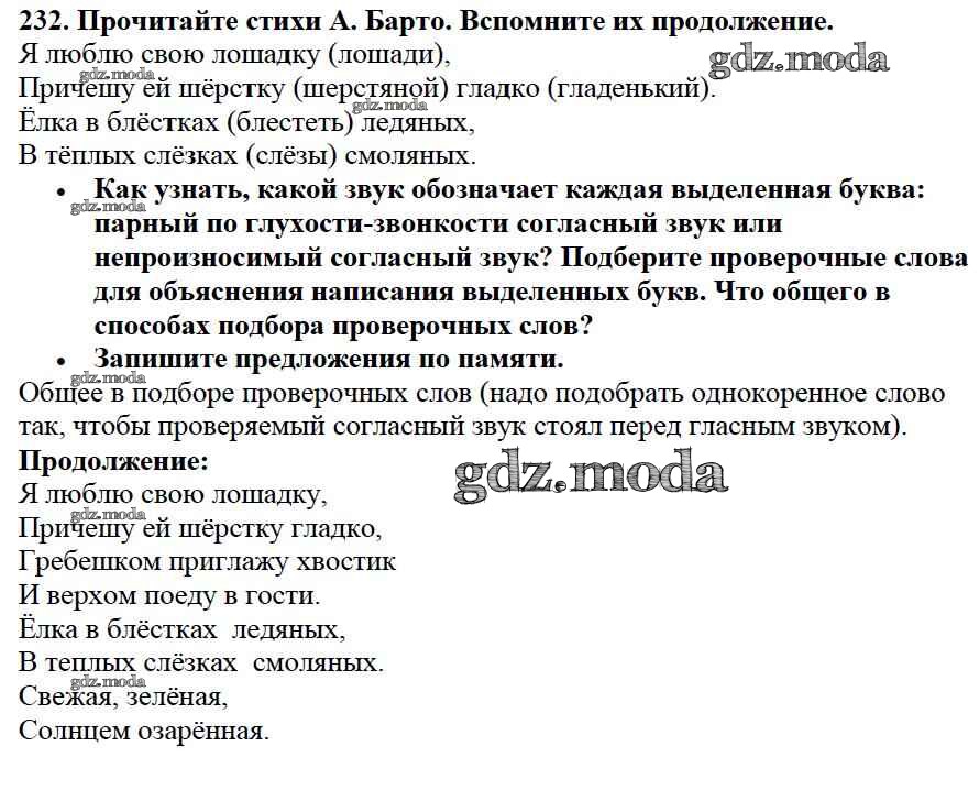 ОТВЕТ на задание № 232 Учебник по Русскому языку 3 класс Канакина Школа России
