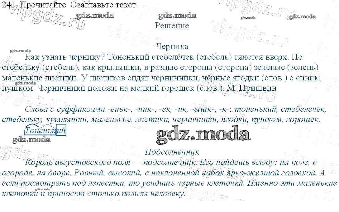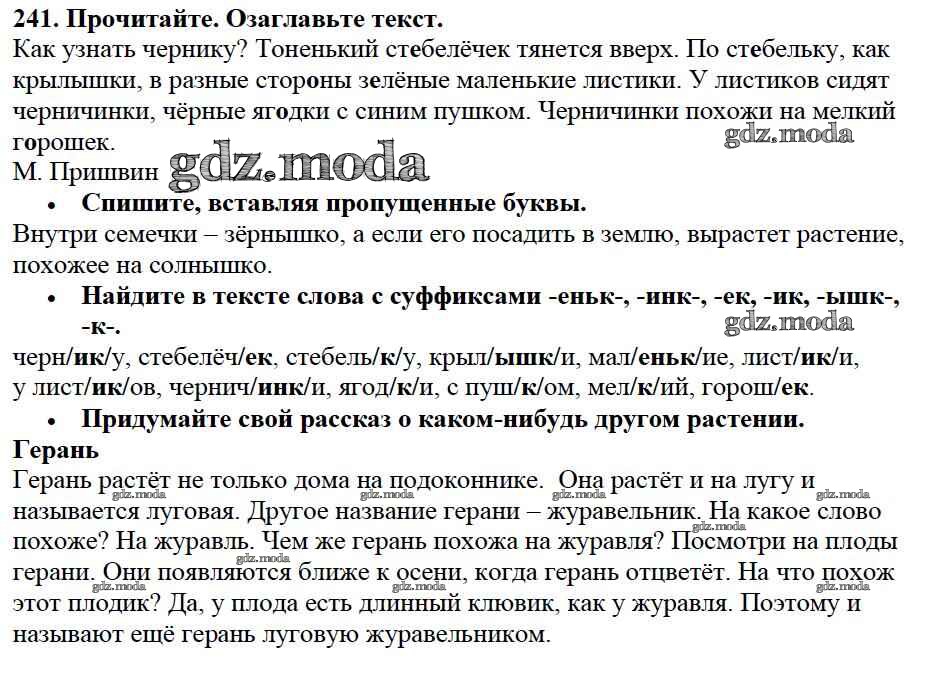 ОТВЕТ на задание № 241 Учебник по Русскому языку 3 класс Канакина Школа России