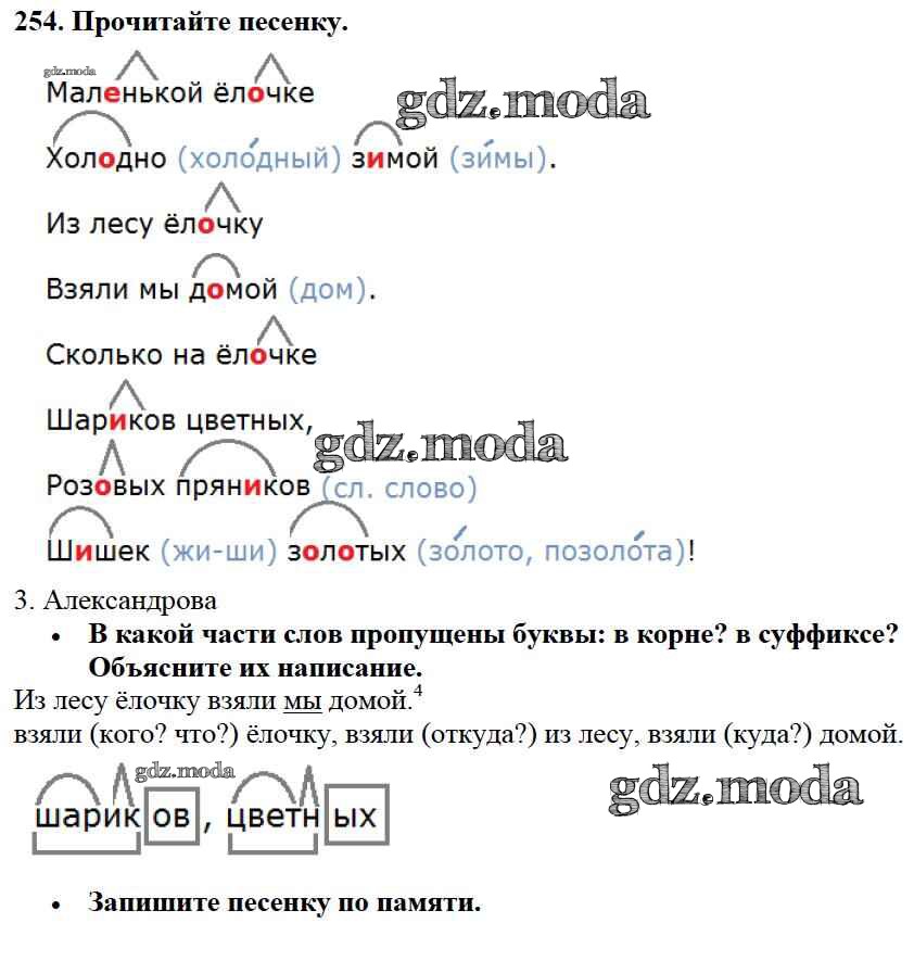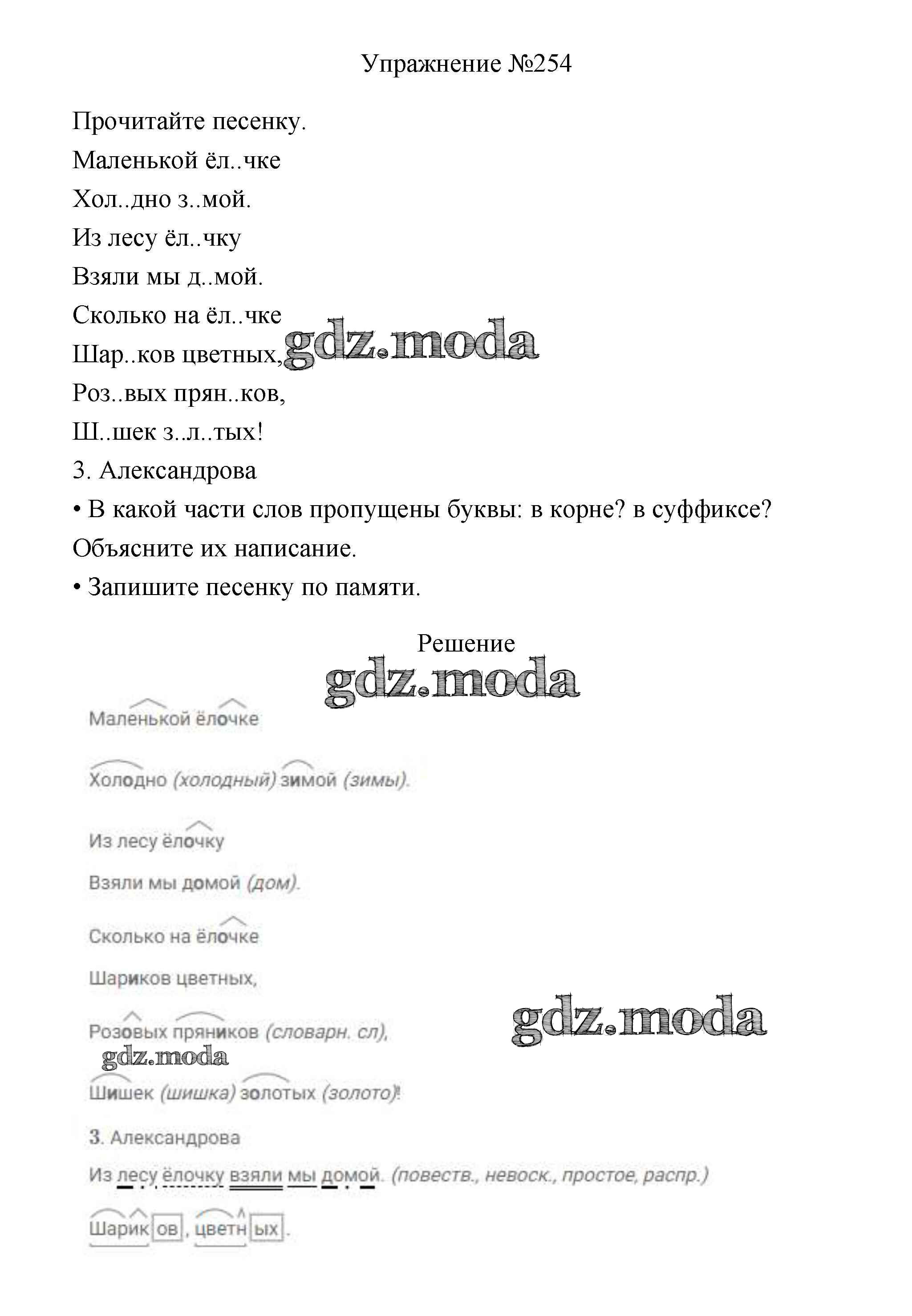 ОТВЕТ на задание № 254 Учебник по Русскому языку 3 класс Канакина Школа России