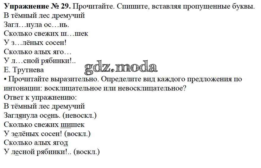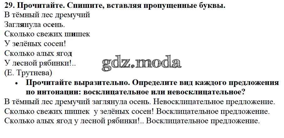 ОТВЕТ на задание № 29 Учебник по Русскому языку 3 класс Канакина Школа России