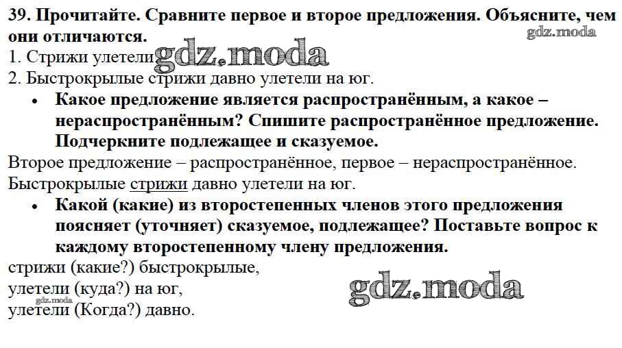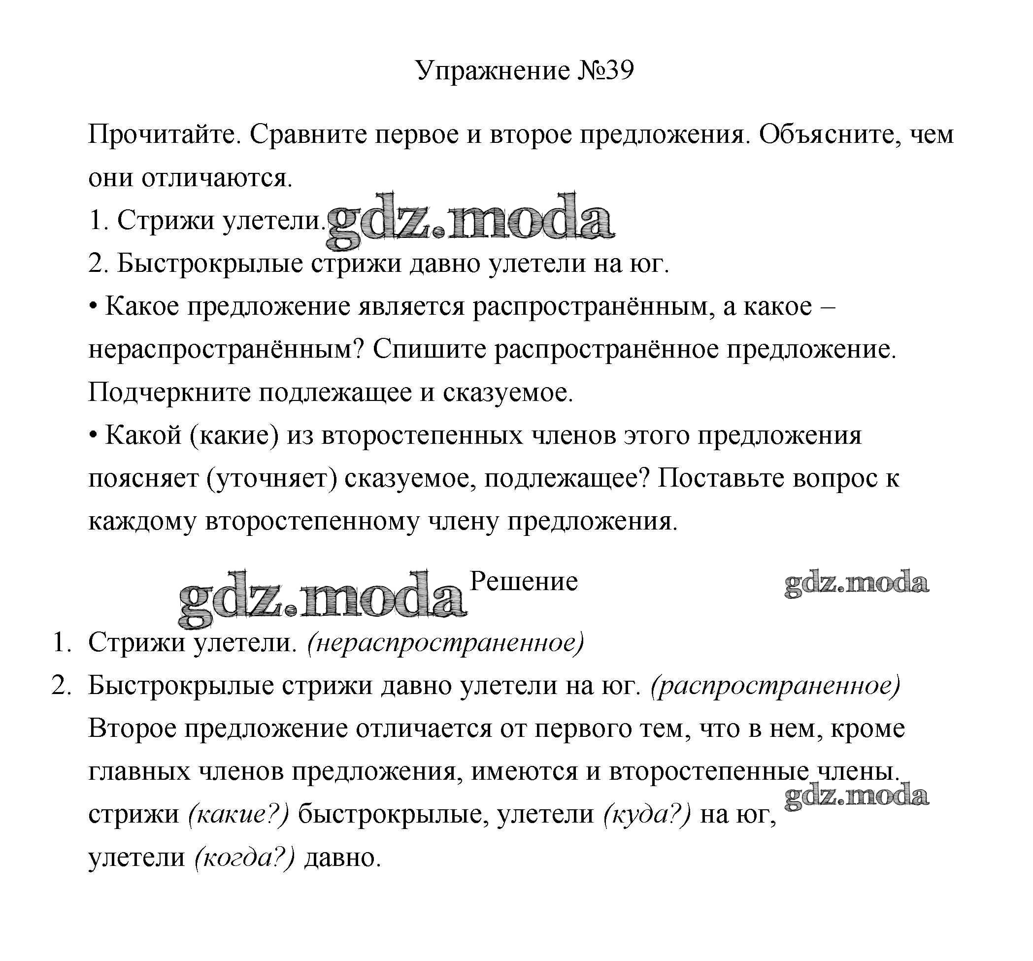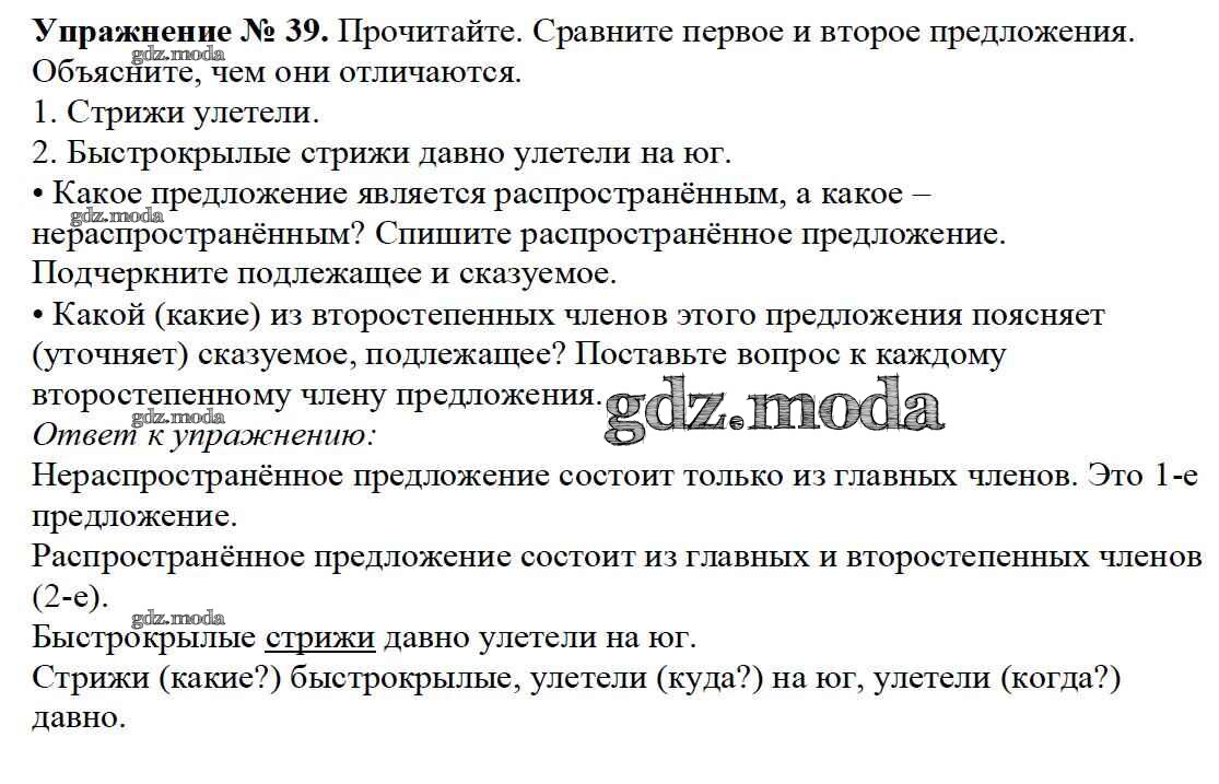ОТВЕТ на задание № 39 Учебник по Русскому языку 3 класс Канакина Школа России