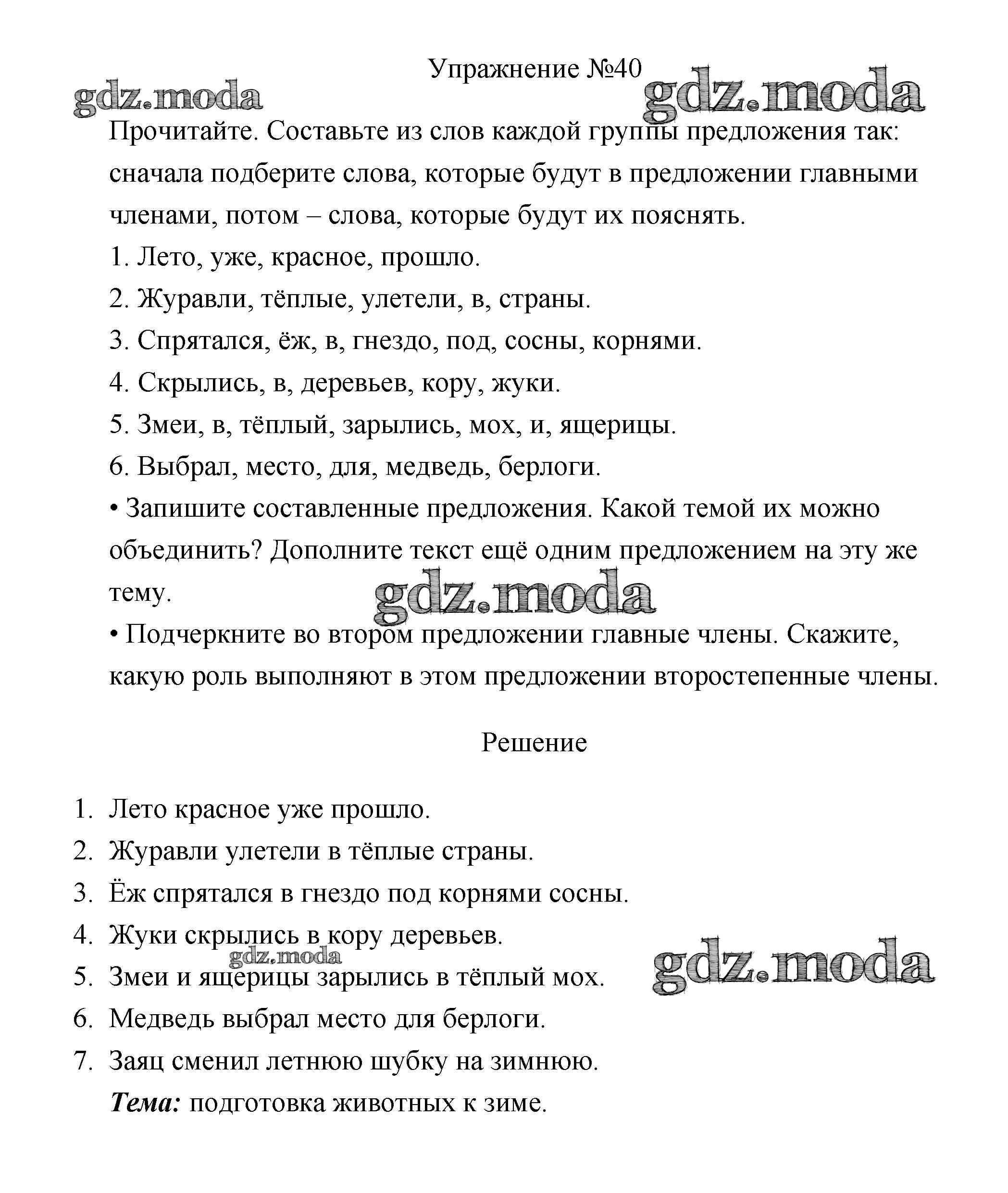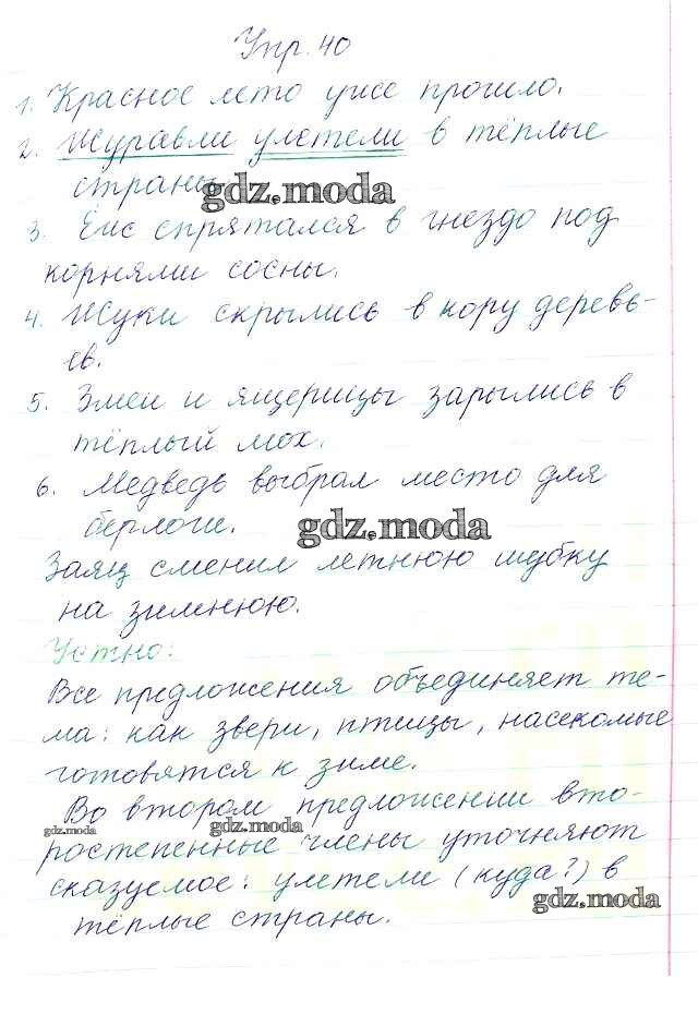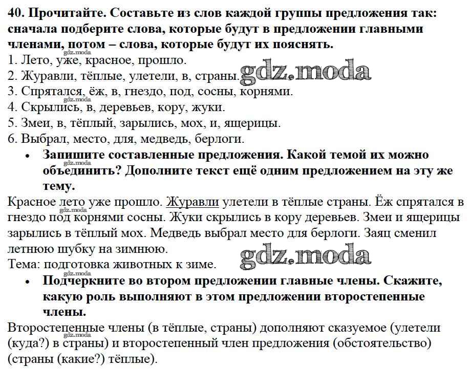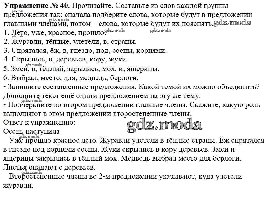 ОТВЕТ на задание № 40 Учебник по Русскому языку 3 класс Канакина Школа России