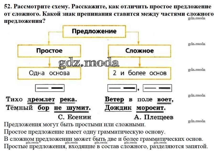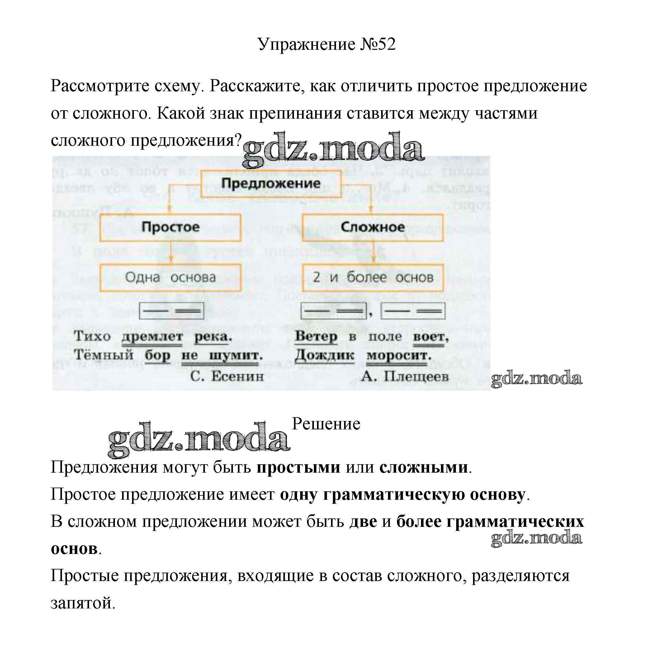 ОТВЕТ на задание № 52 Учебник по Русскому языку 3 класс Канакина Школа России