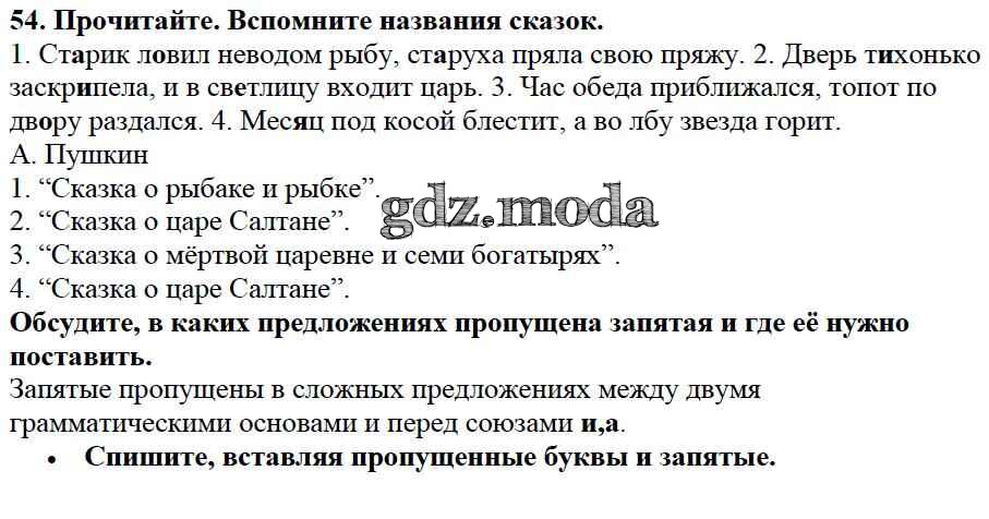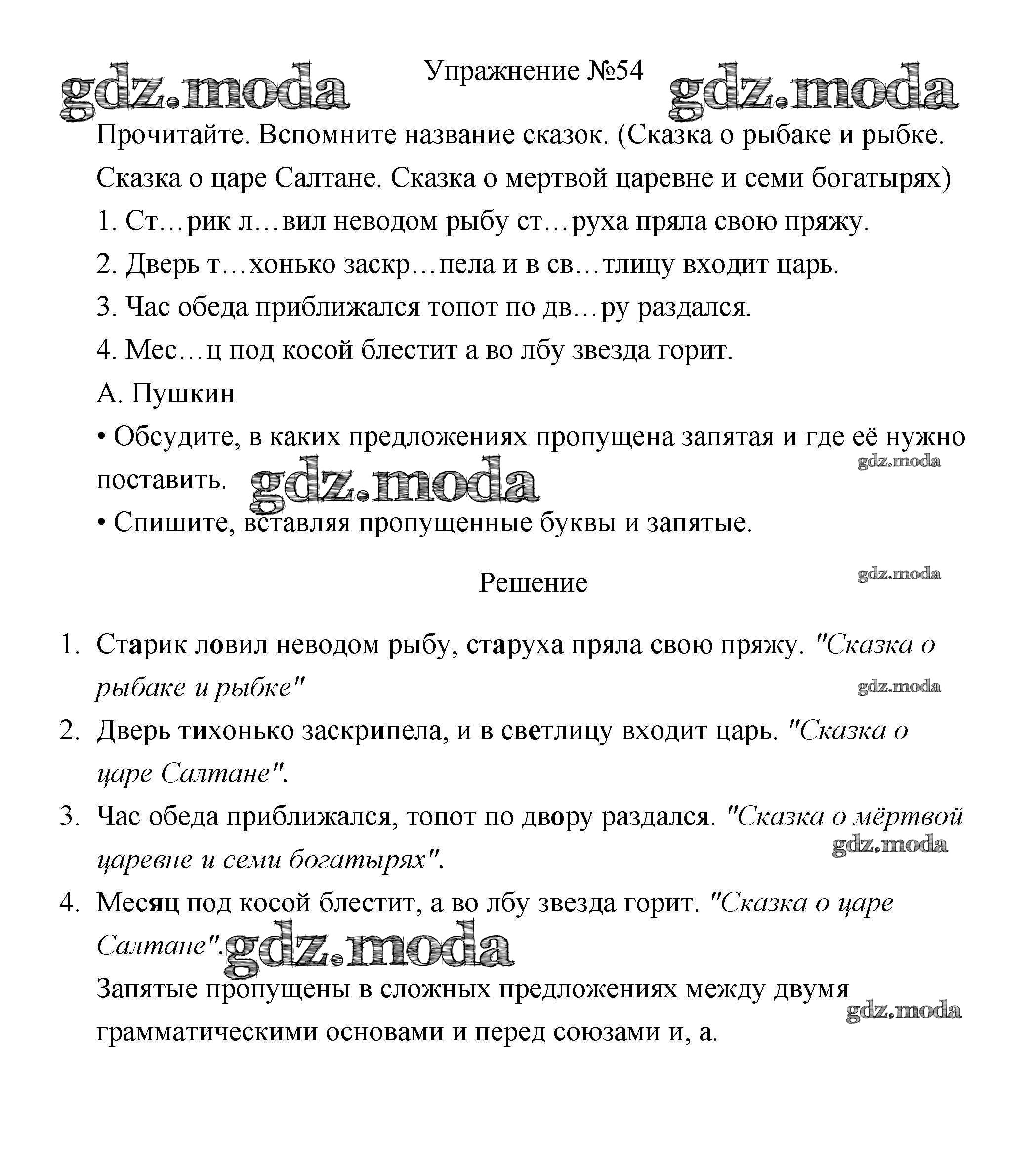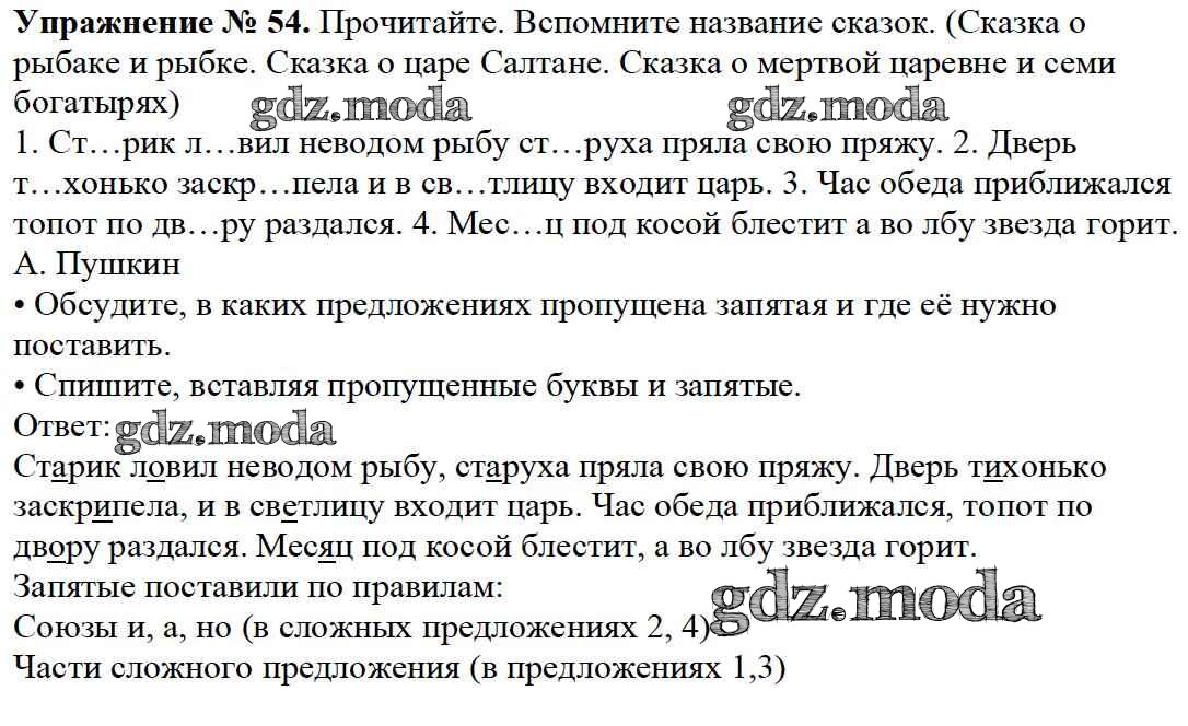 ОТВЕТ на задание № 54 Учебник по Русскому языку 3 класс Канакина Школа России
