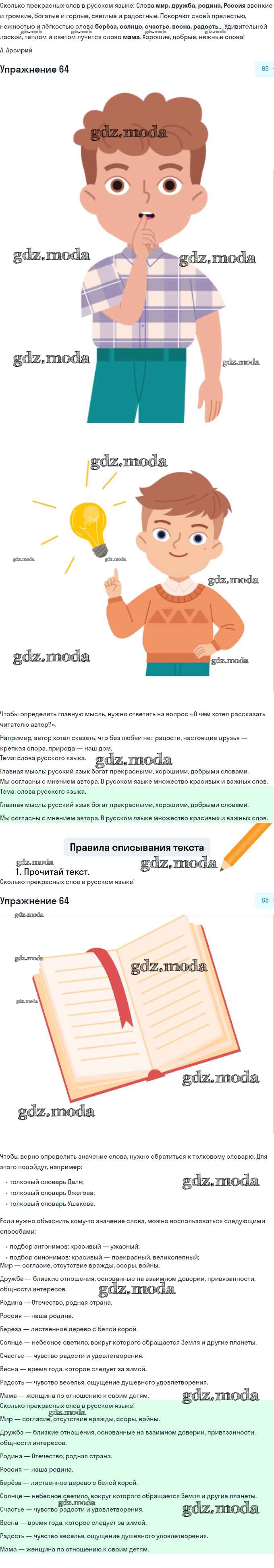 ОТВЕТ на задание № 64 Учебник по Русскому языку 3 класс Канакина Школа России