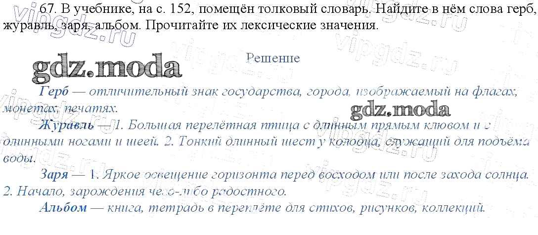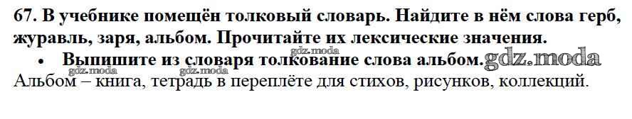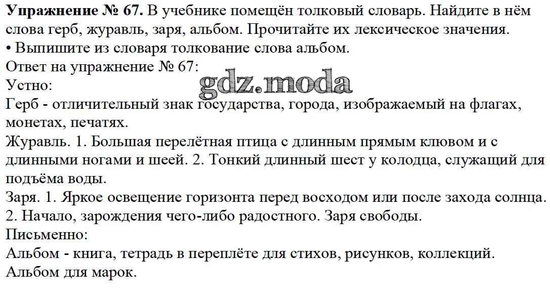 ОТВЕТ на задание № 67 Учебник по Русскому языку 3 класс Канакина Школа России