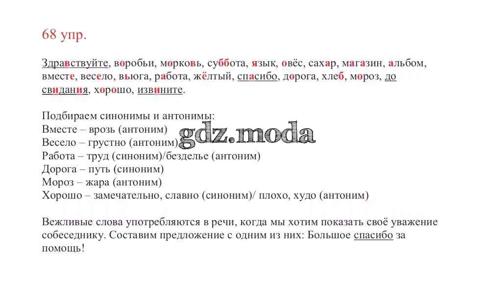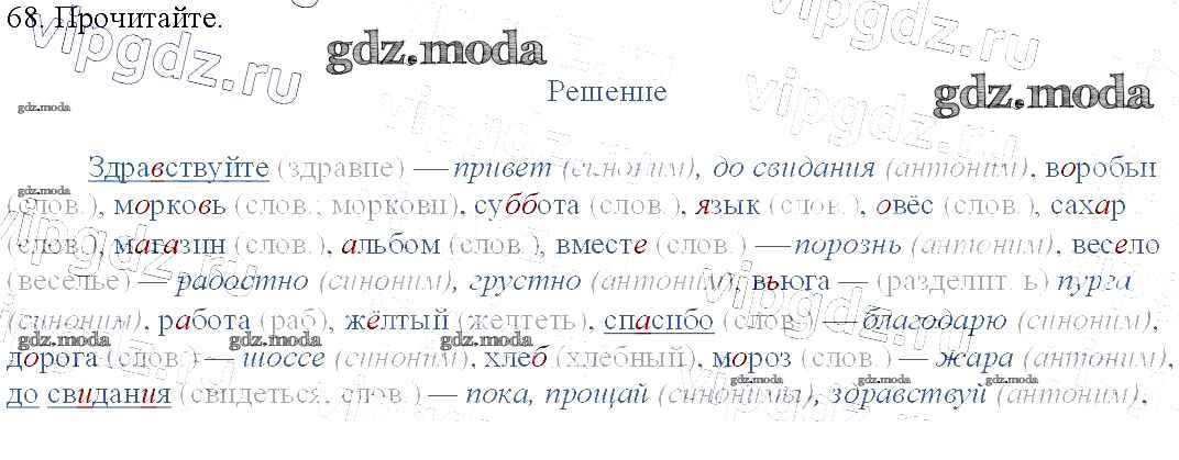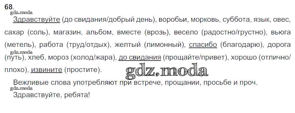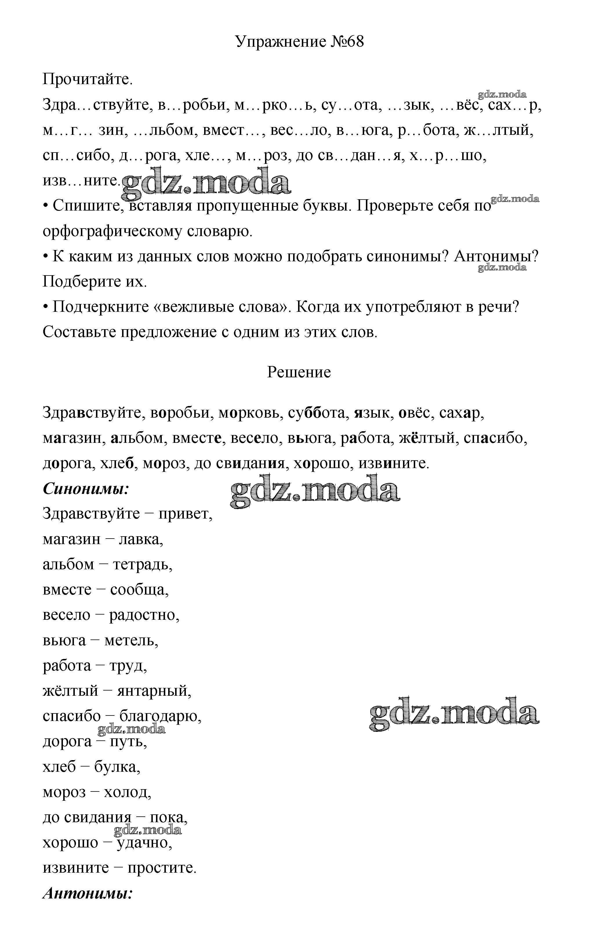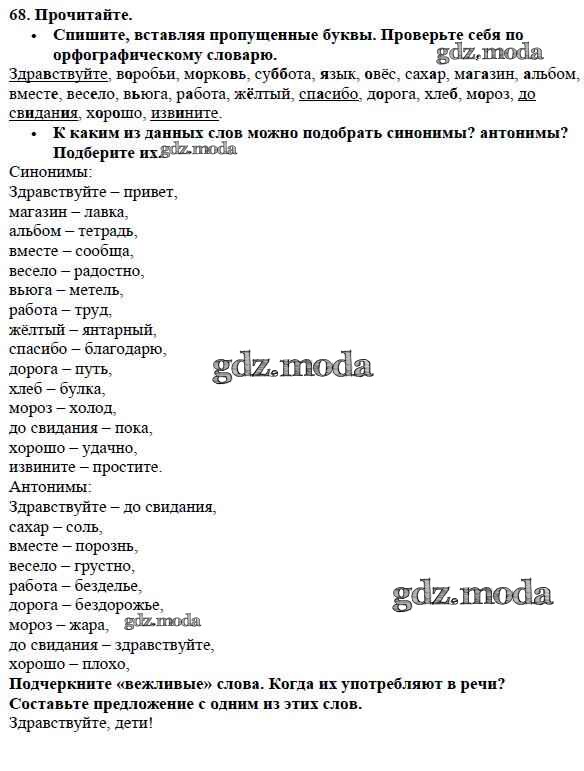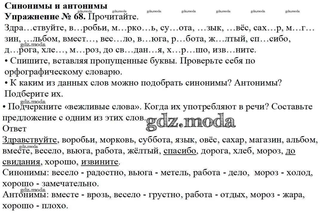ОТВЕТ на задание № 68 Учебник по Русскому языку 3 класс Канакина Школа России