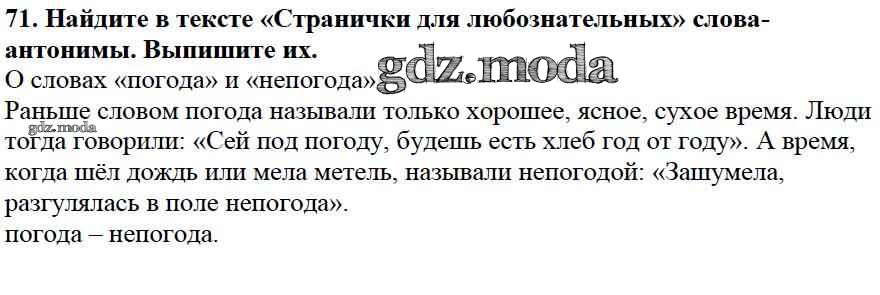 ОТВЕТ на задание № 71 Учебник по Русскому языку 3 класс Канакина Школа России