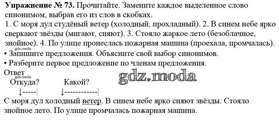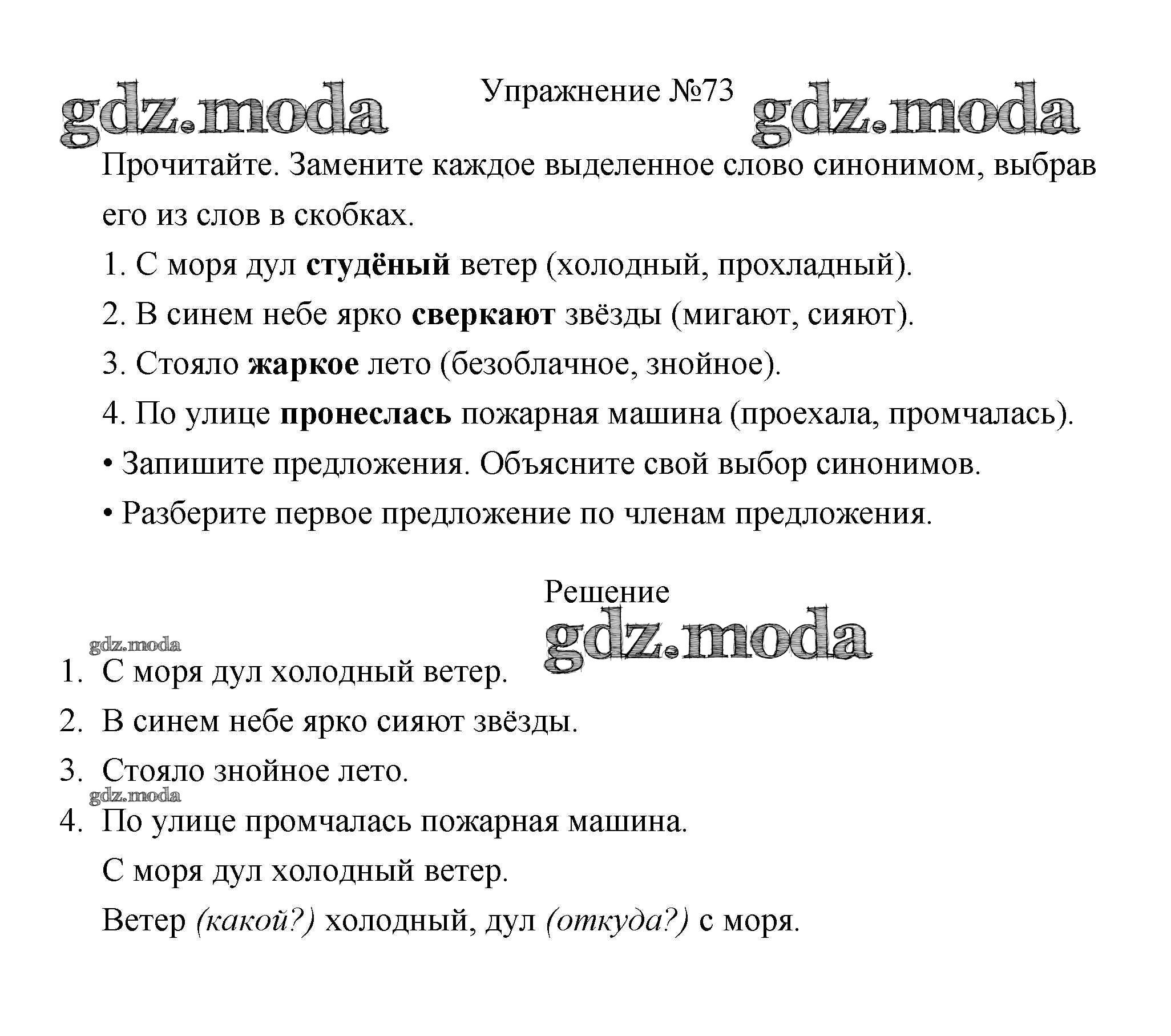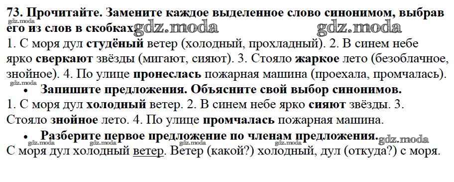 ОТВЕТ на задание № 73 Учебник по Русскому языку 3 класс Канакина Школа России