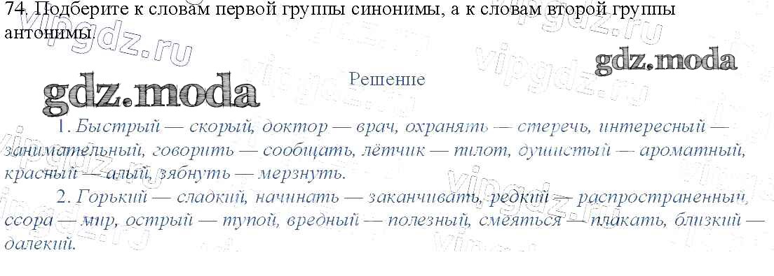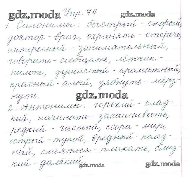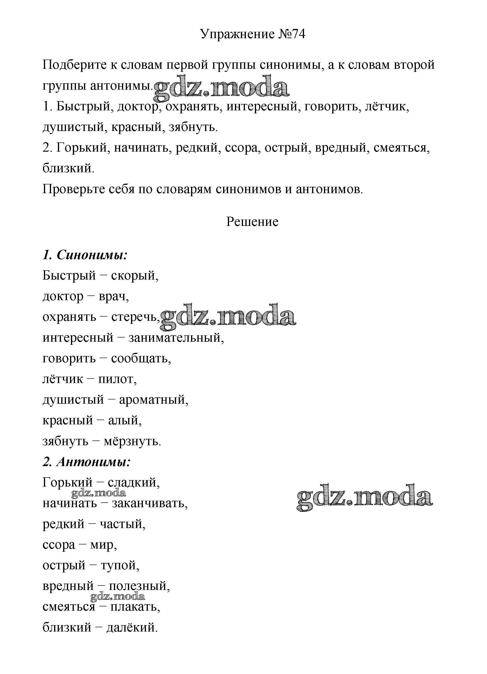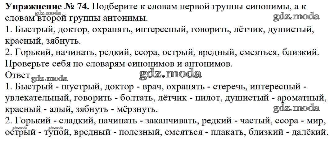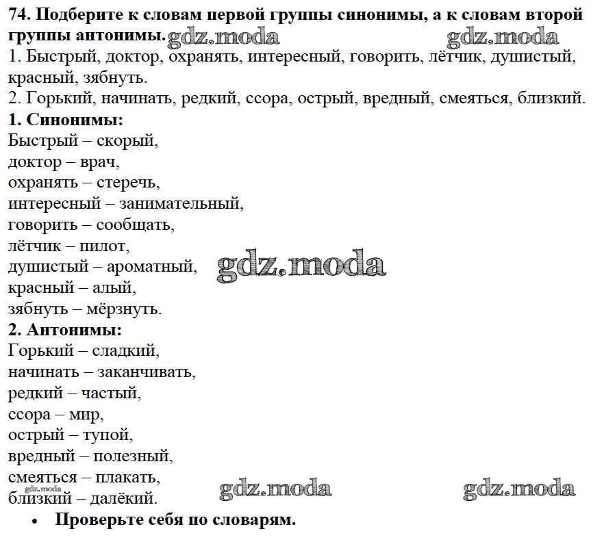 ОТВЕТ на задание № 74 Учебник по Русскому языку 3 класс Канакина Школа России