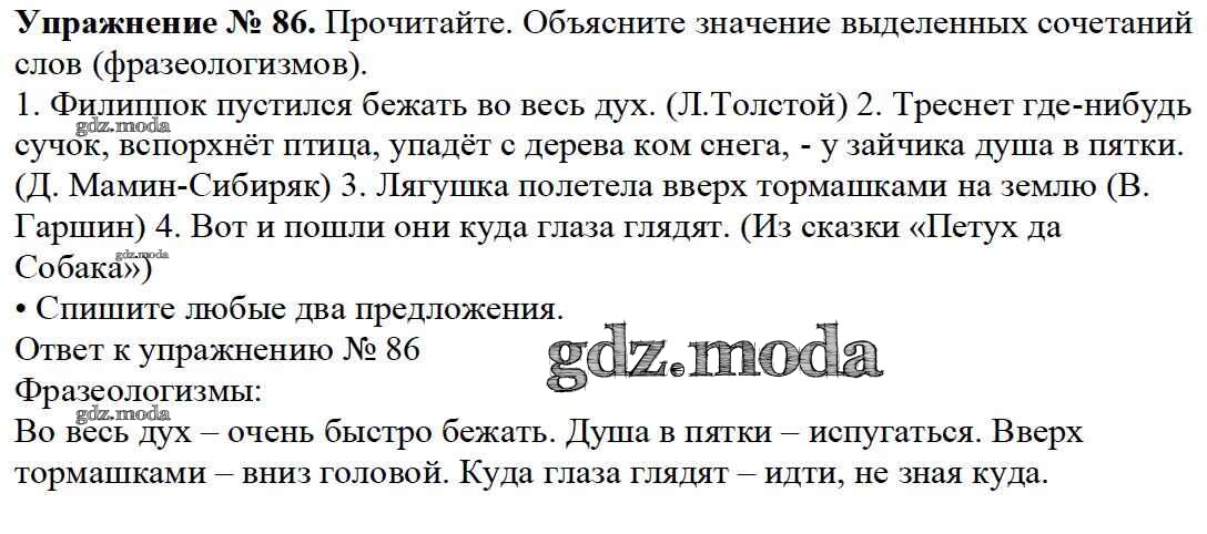 ОТВЕТ на задание № 86 Учебник по Русскому языку 3 класс Канакина Школа России