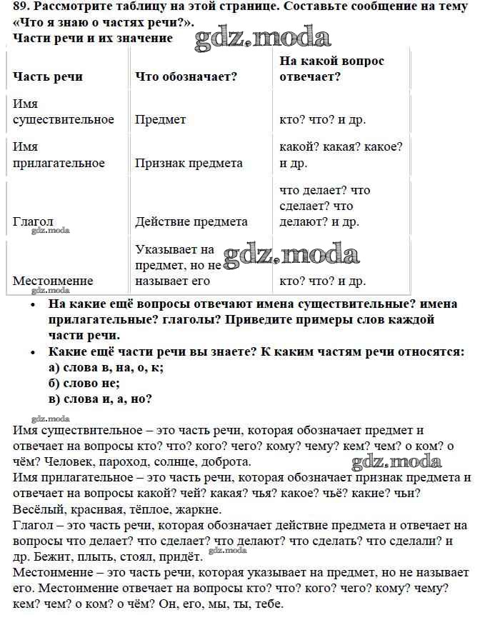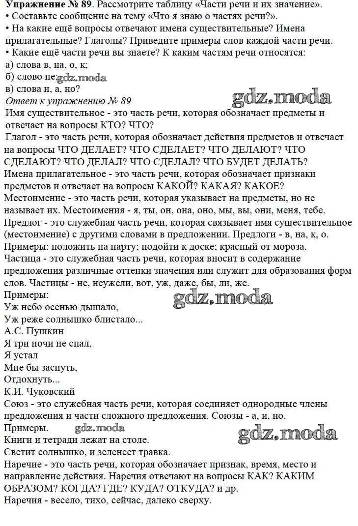 ОТВЕТ на задание № 89 Учебник по Русскому языку 3 класс Канакина Школа России