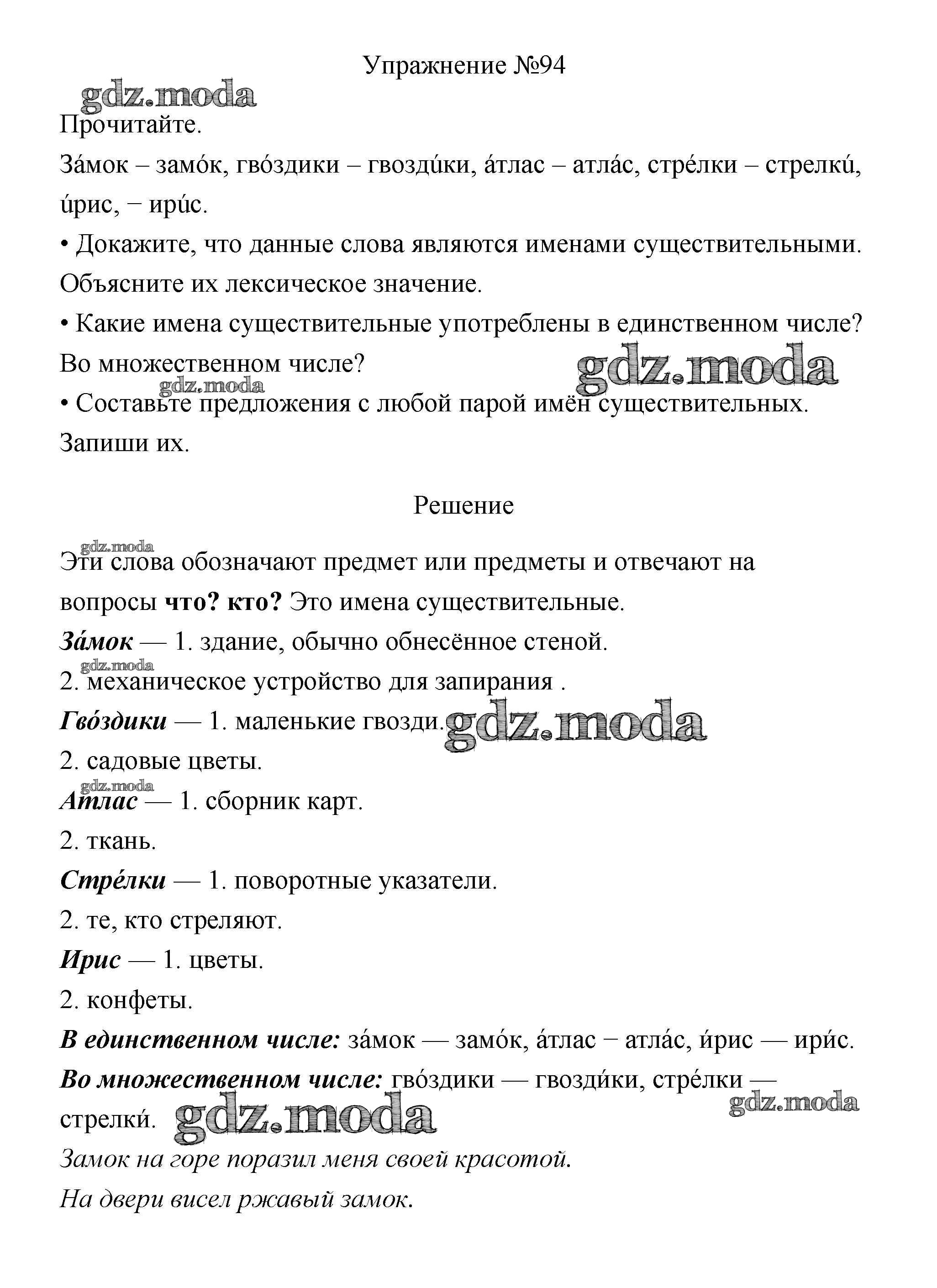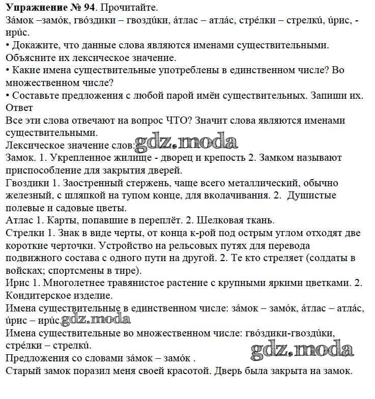ОТВЕТ на задание № 94 Учебник по Русскому языку 3 класс Канакина Школа России