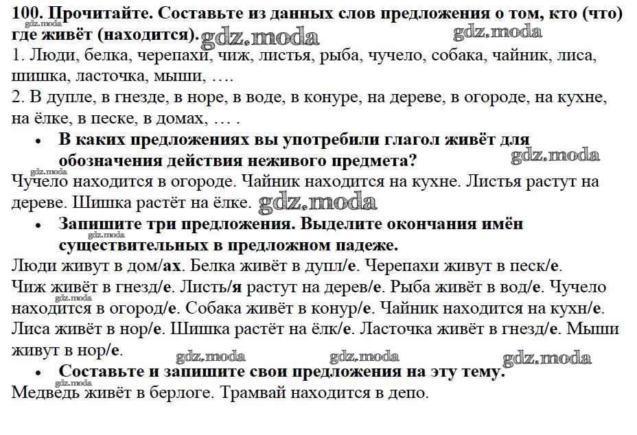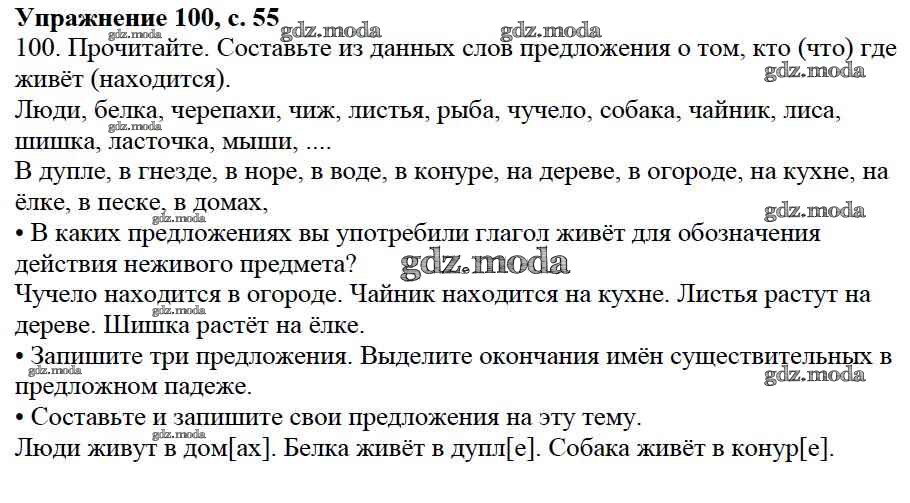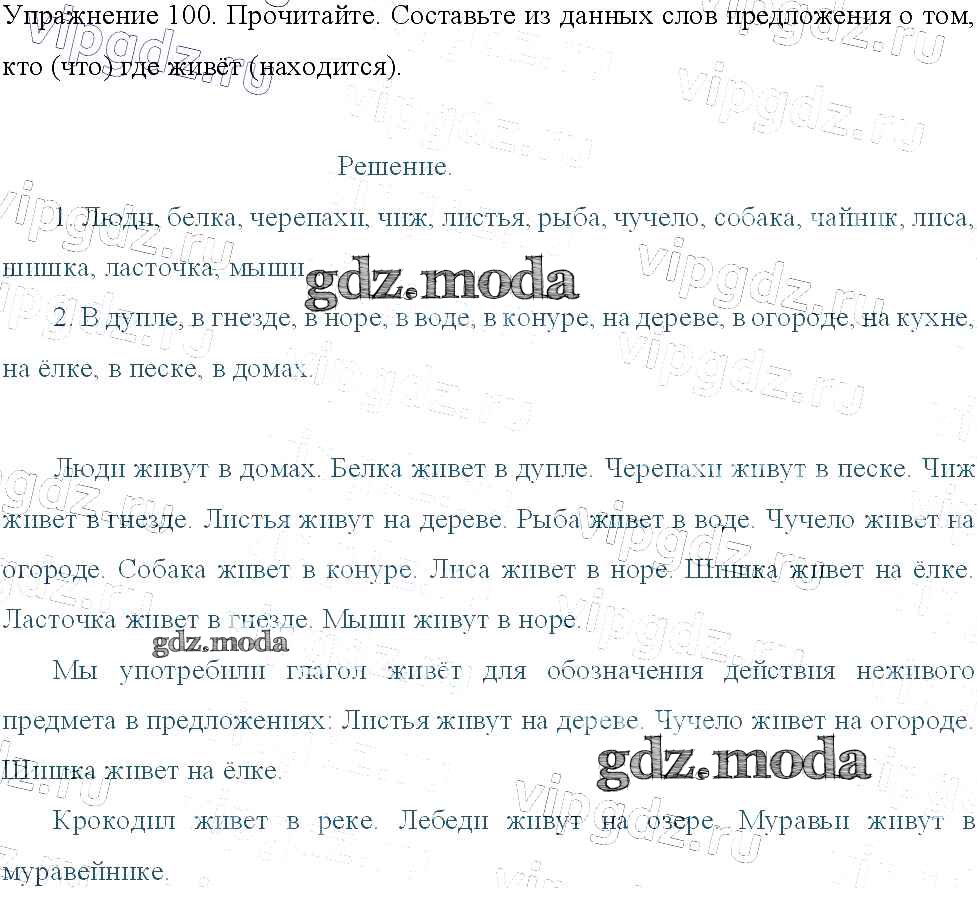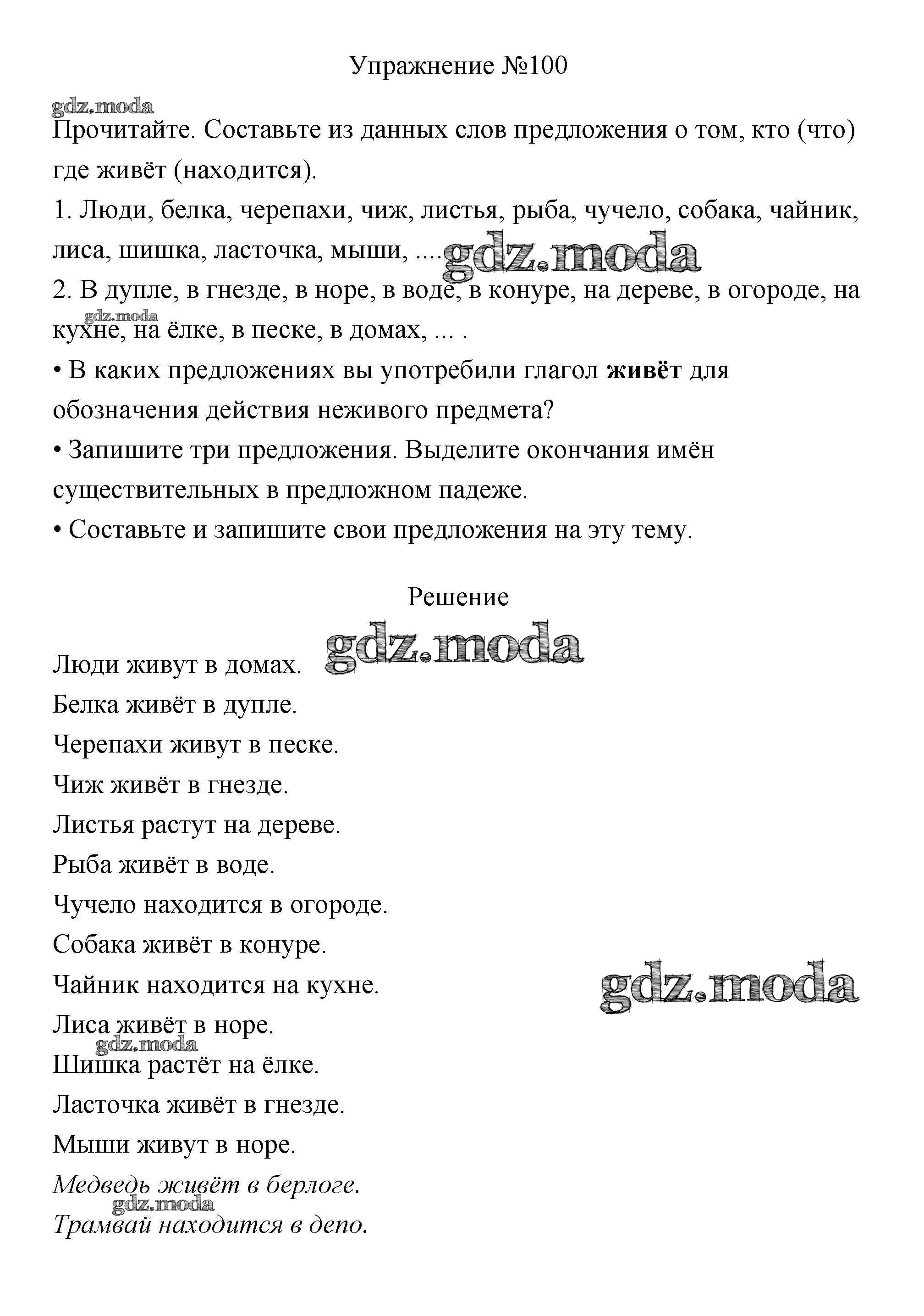 ОТВЕТ на задание № 100 Учебник по Русскому языку 3 класс Канакина Школа России