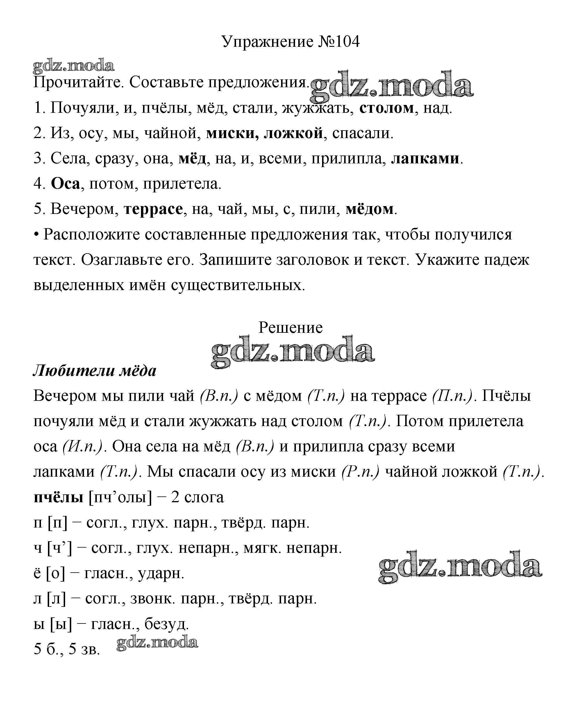 ОТВЕТ на задание № 104 Учебник по Русскому языку 3 класс Канакина Школа России