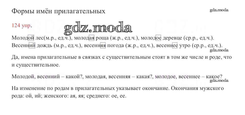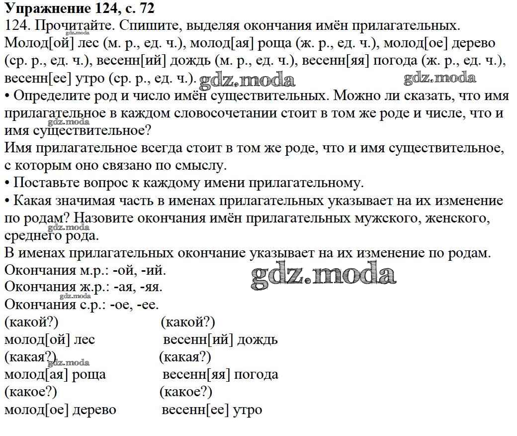 ОТВЕТ на задание № 124 Учебник по Русскому языку 3 класс Канакина Школа России