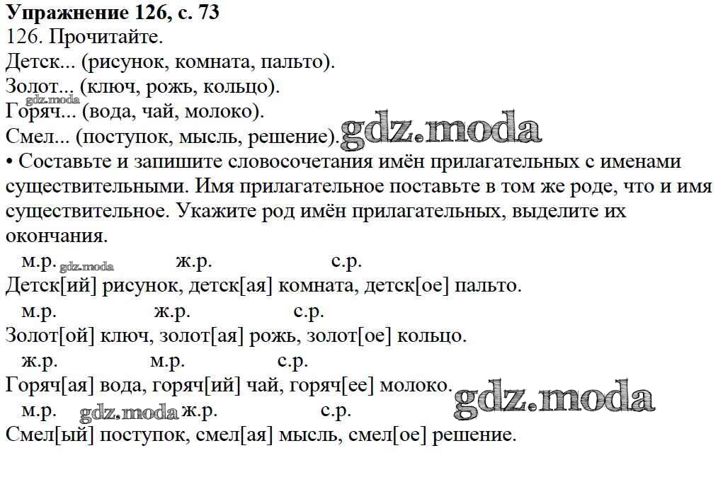 ОТВЕТ на задание № 126 Учебник по Русскому языку 3 класс Канакина Школа России
