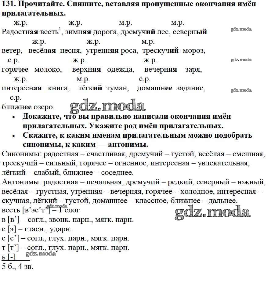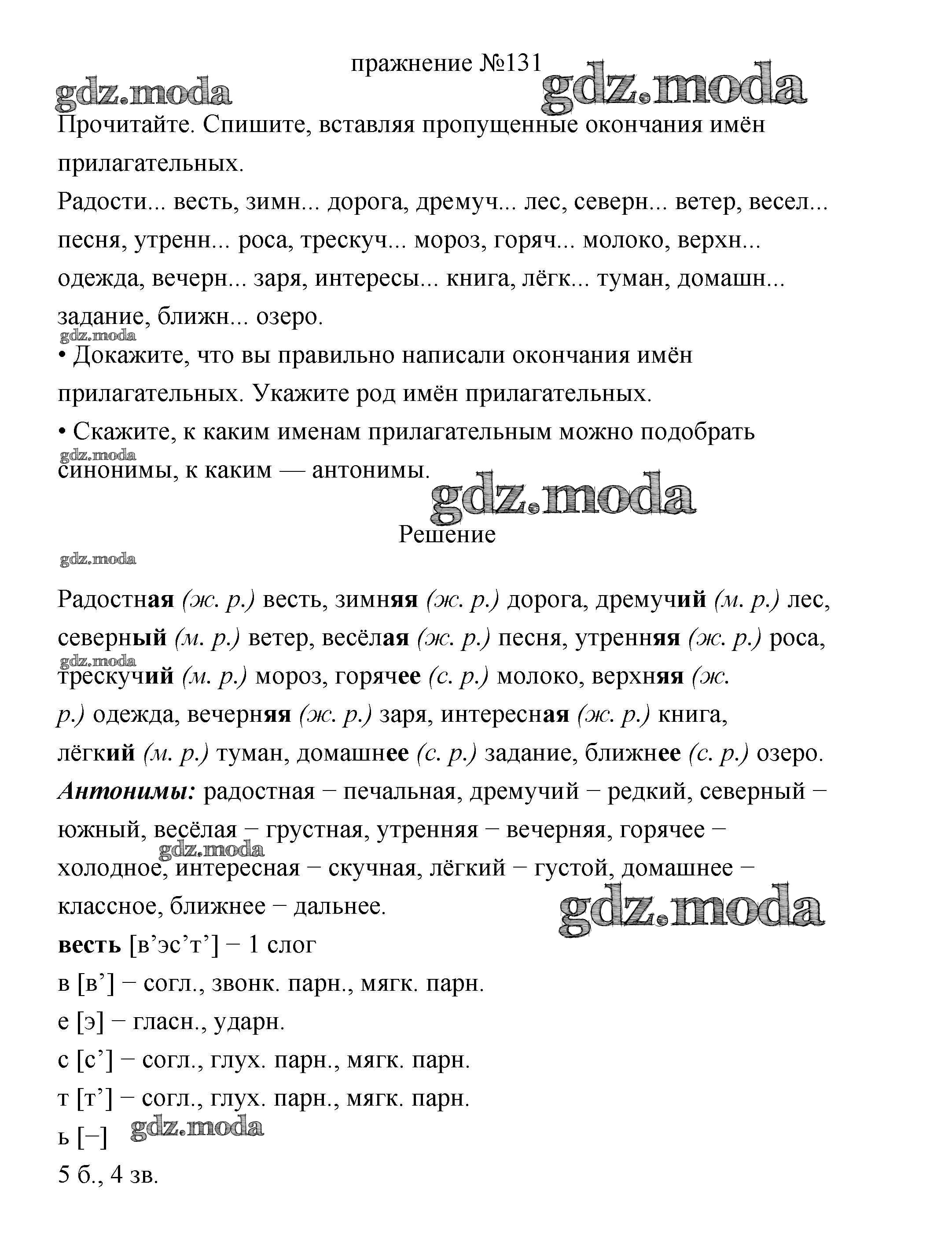 ОТВЕТ на задание № 131 Учебник по Русскому языку 3 класс Канакина Школа России