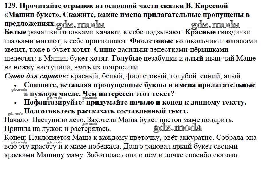 ОТВЕТ на задание № 139 Учебник по Русскому языку 3 класс Канакина Школа России