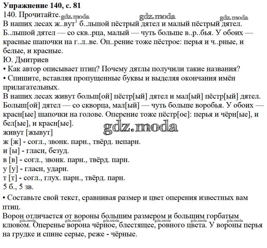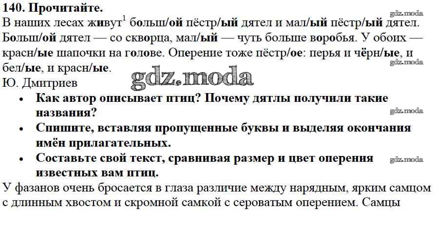 ОТВЕТ на задание № 140 Учебник по Русскому языку 3 класс Канакина Школа России