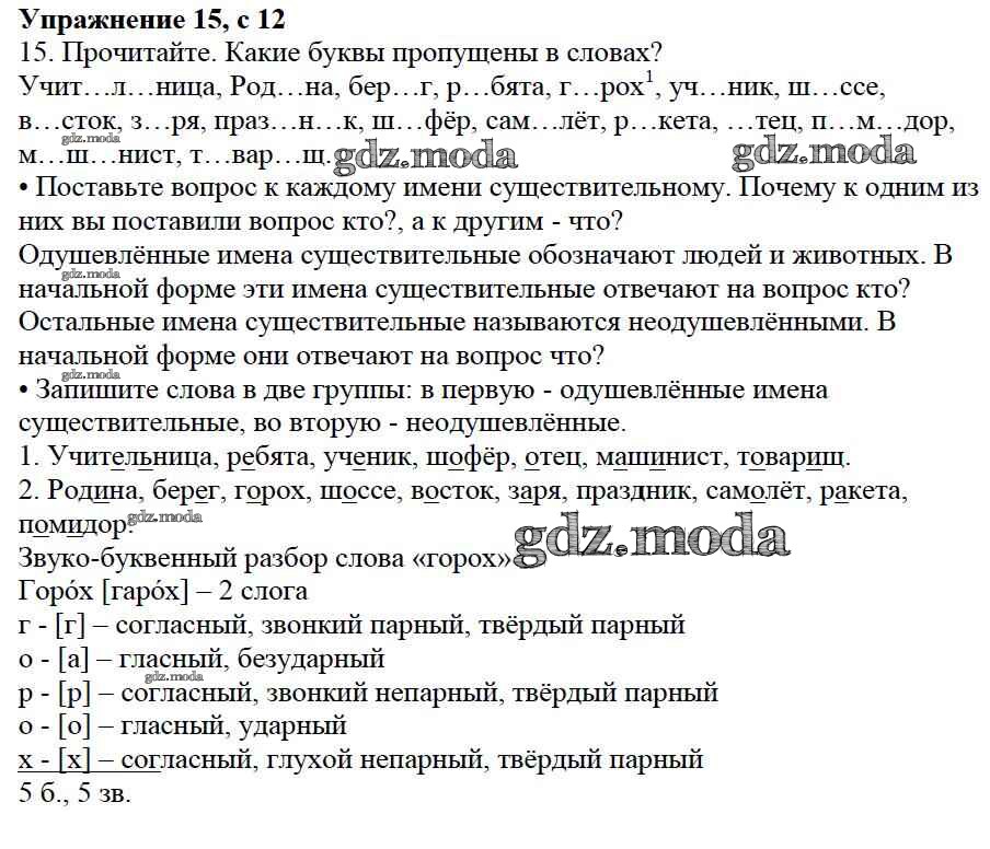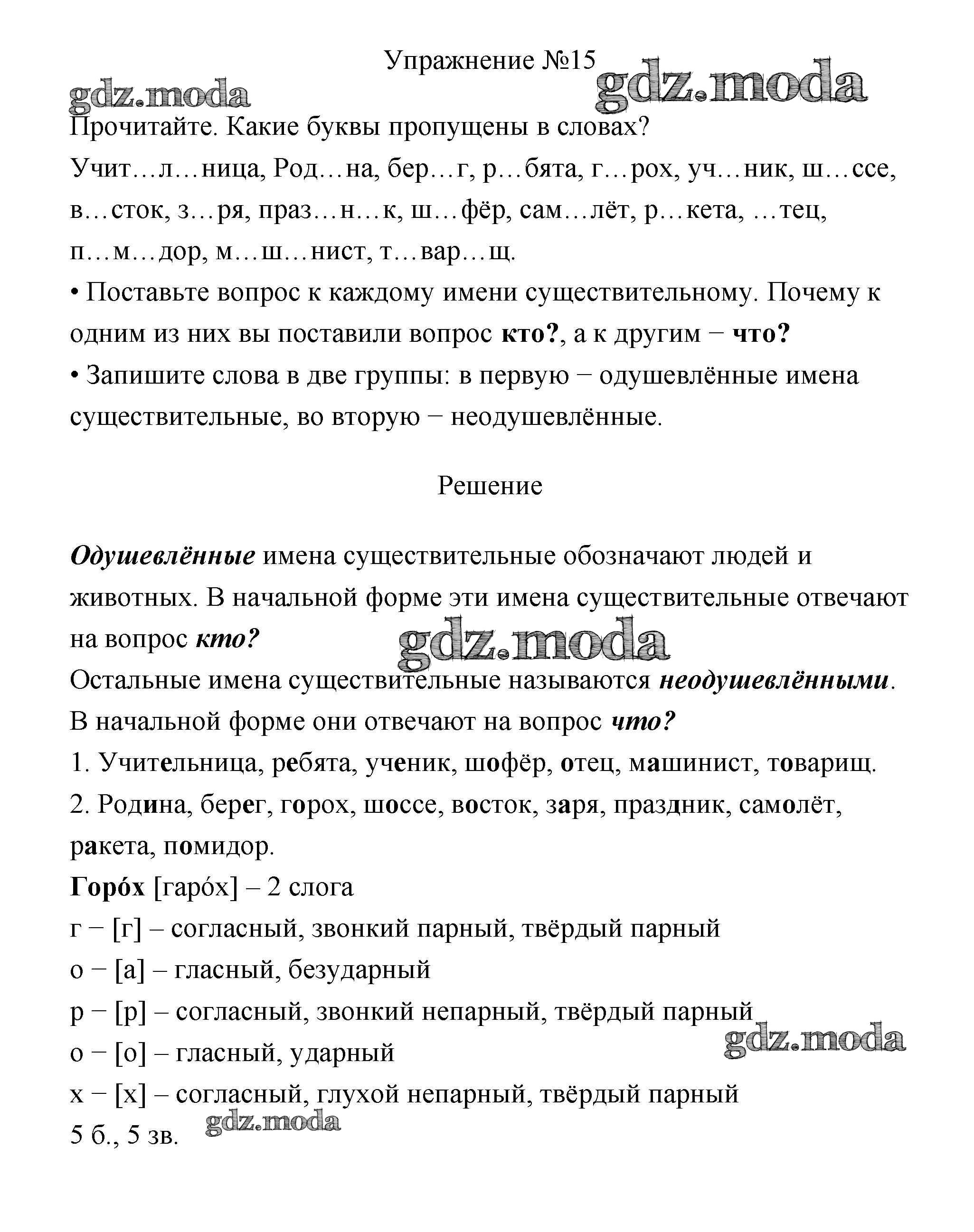 ОТВЕТ на задание № 15 Учебник по Русскому языку 3 класс Канакина Школа России