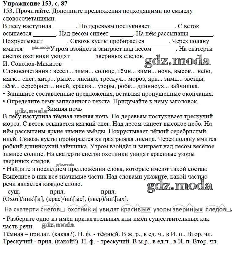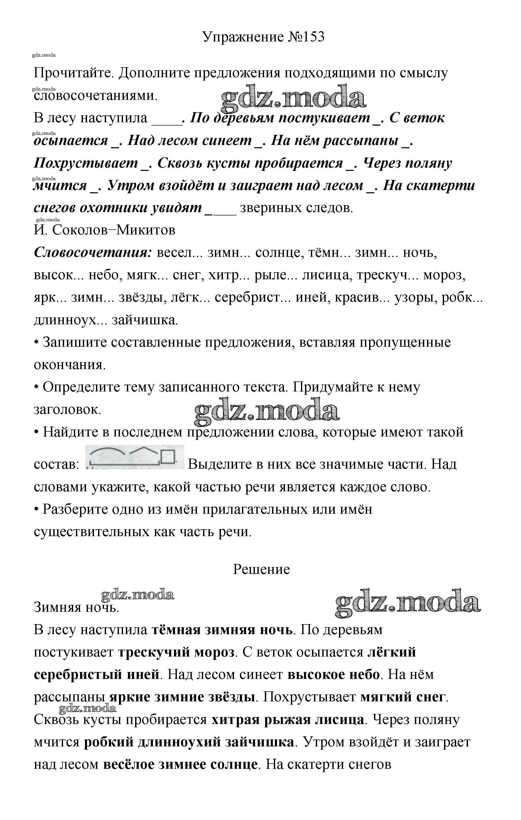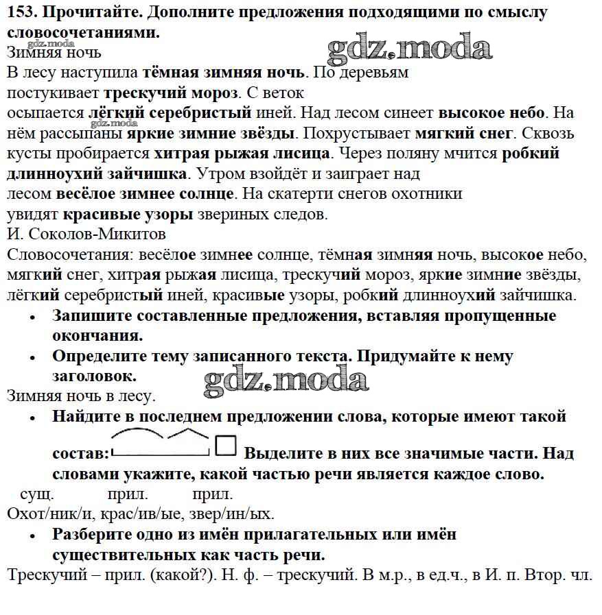 ОТВЕТ на задание № 153 Учебник по Русскому языку 3 класс Канакина Школа России