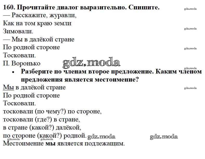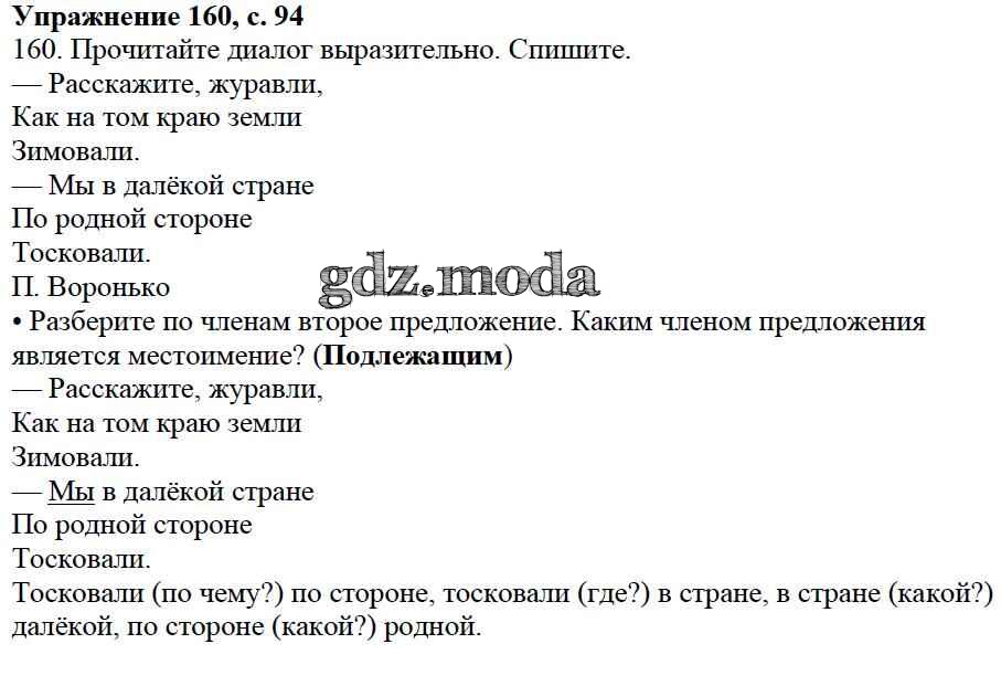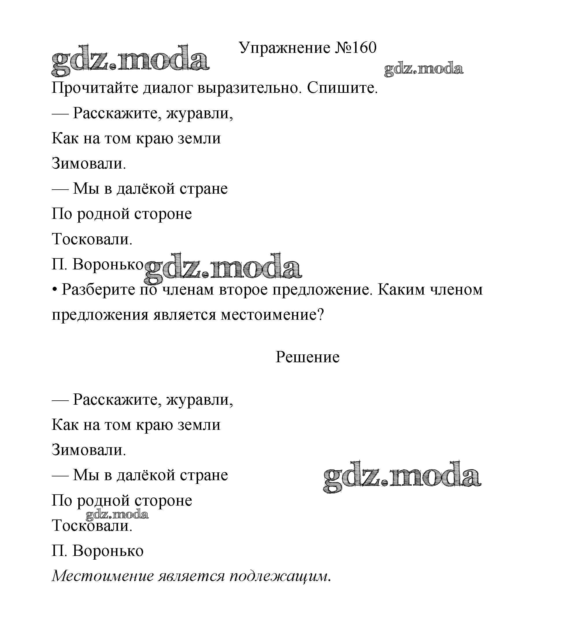 ОТВЕТ на задание № 160 Учебник по Русскому языку 3 класс Канакина Школа России
