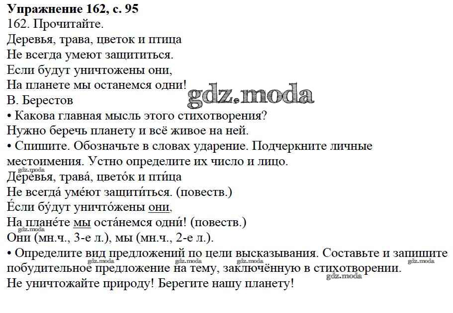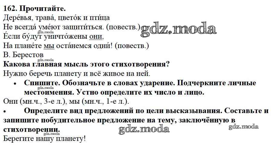 ОТВЕТ на задание № 162 Учебник по Русскому языку 3 класс Канакина Школа России