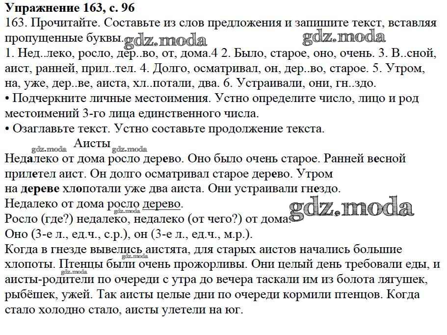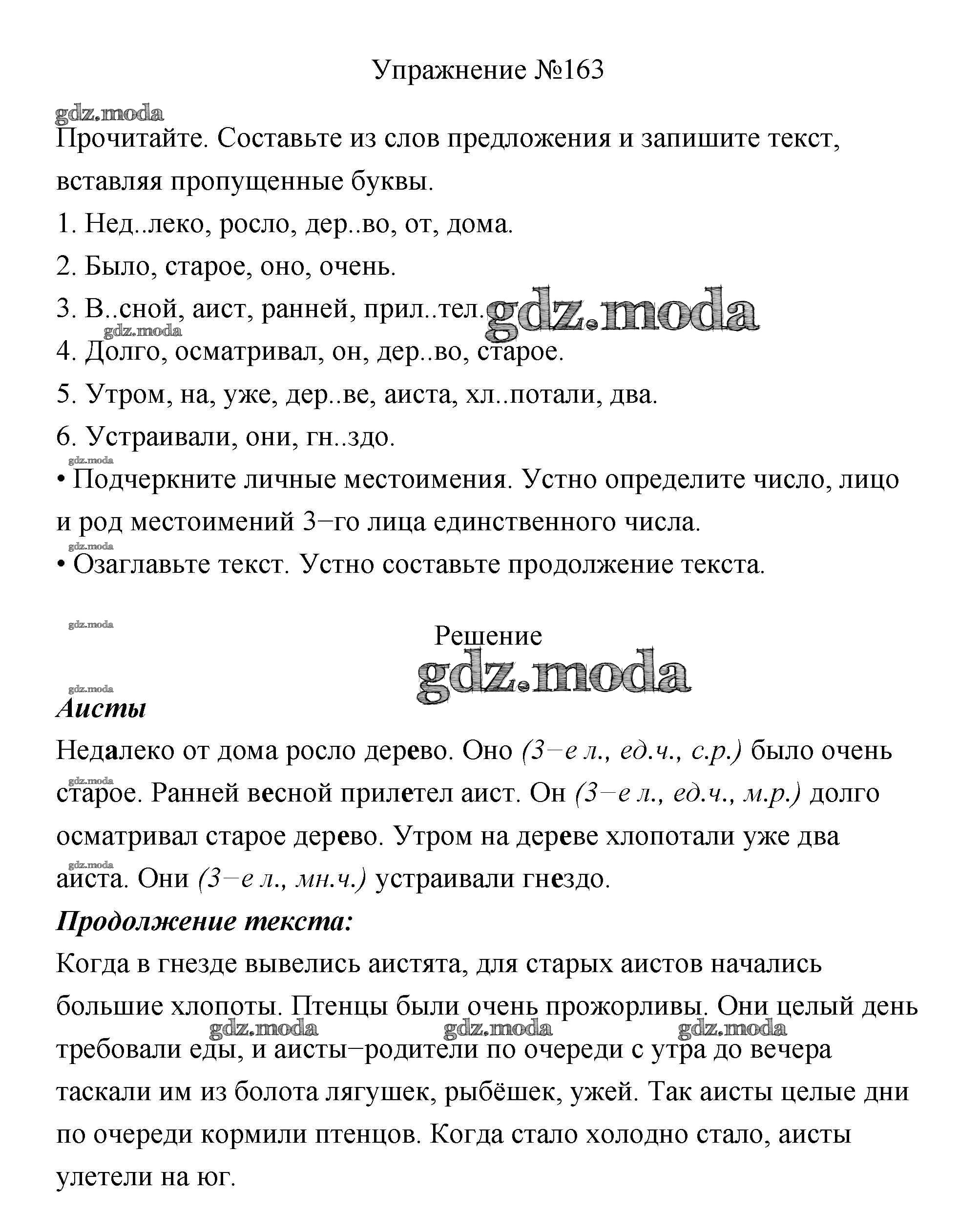 ОТВЕТ на задание № 163 Учебник по Русскому языку 3 класс Канакина Школа России