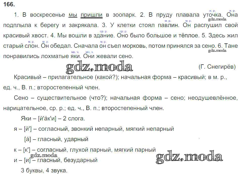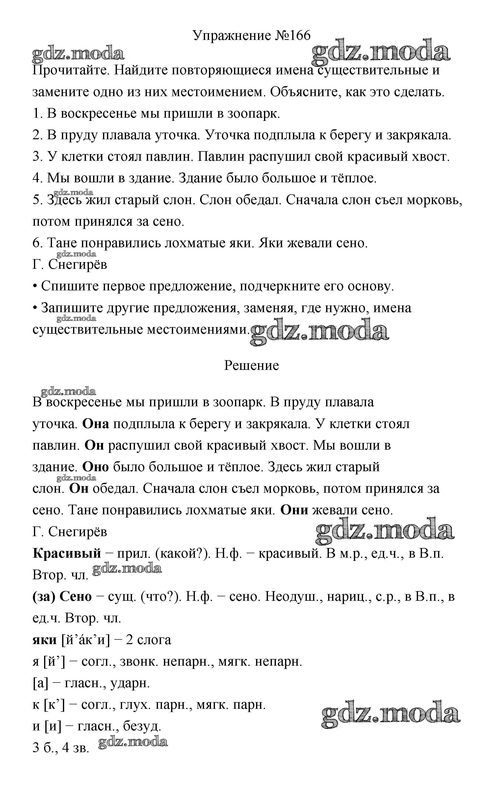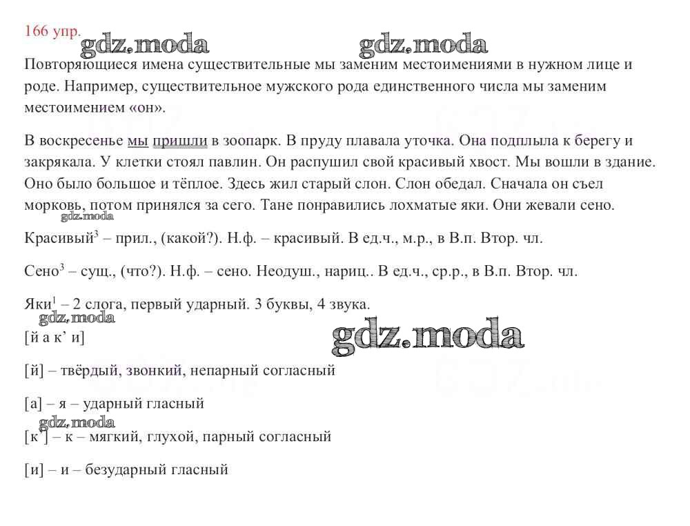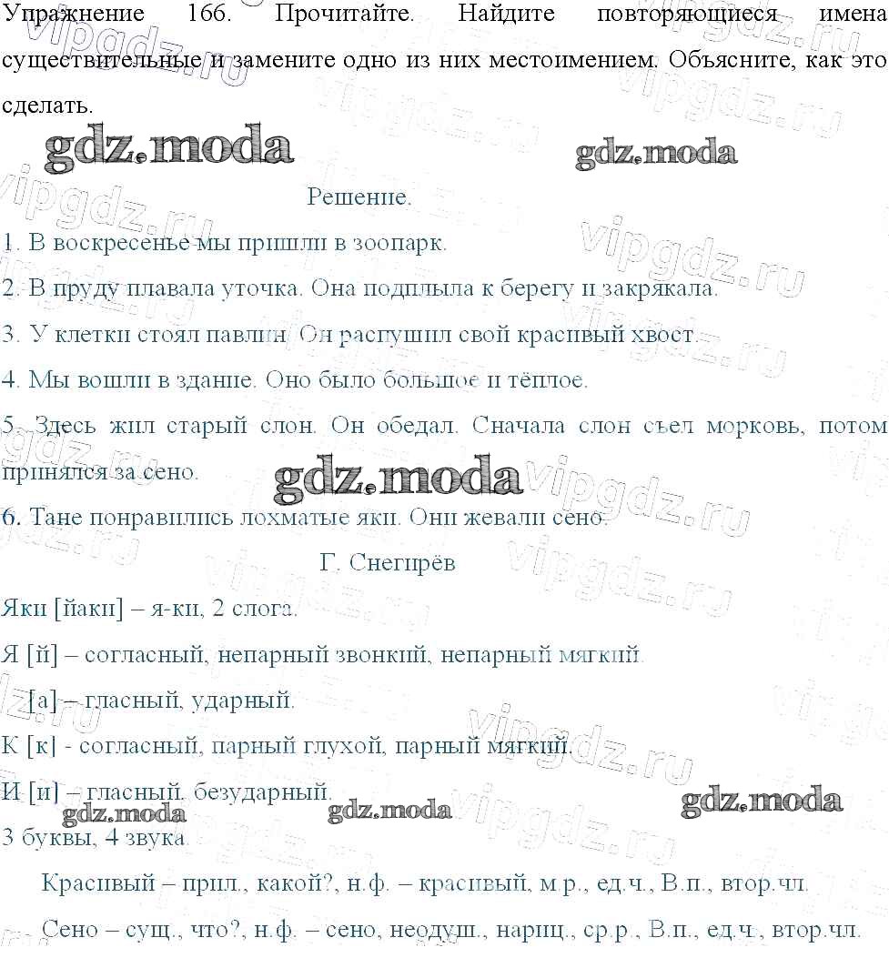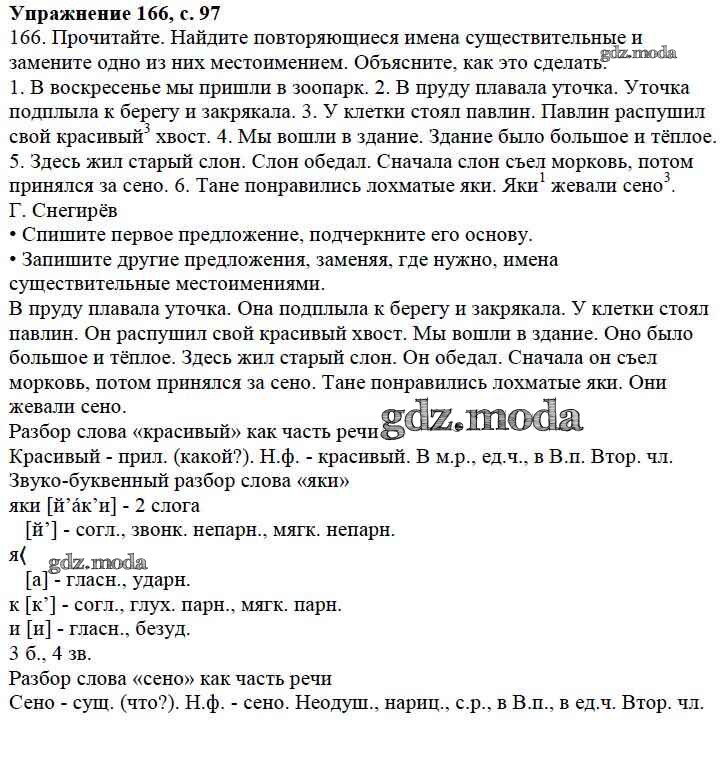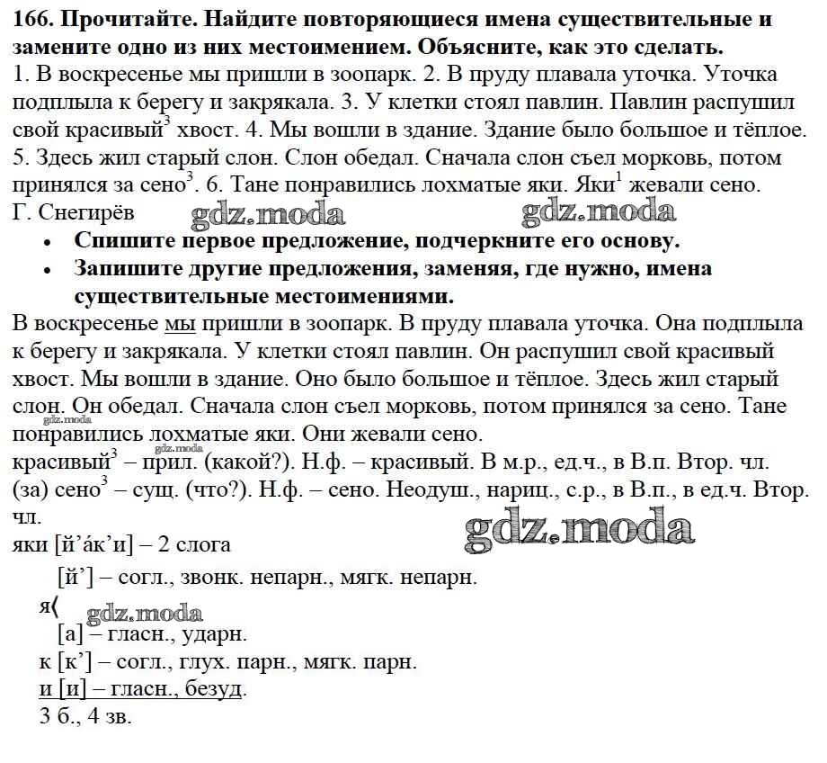 ОТВЕТ на задание № 166 Учебник по Русскому языку 3 класс Канакина Школа России