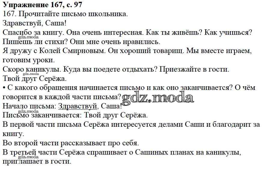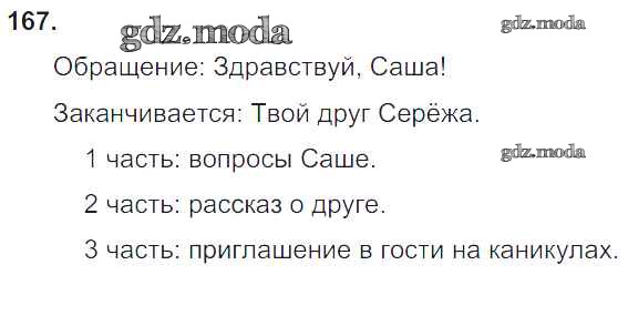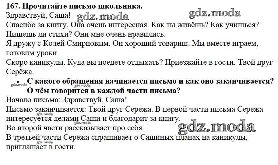 ОТВЕТ на задание № 167 Учебник по Русскому языку 3 класс Канакина Школа России
