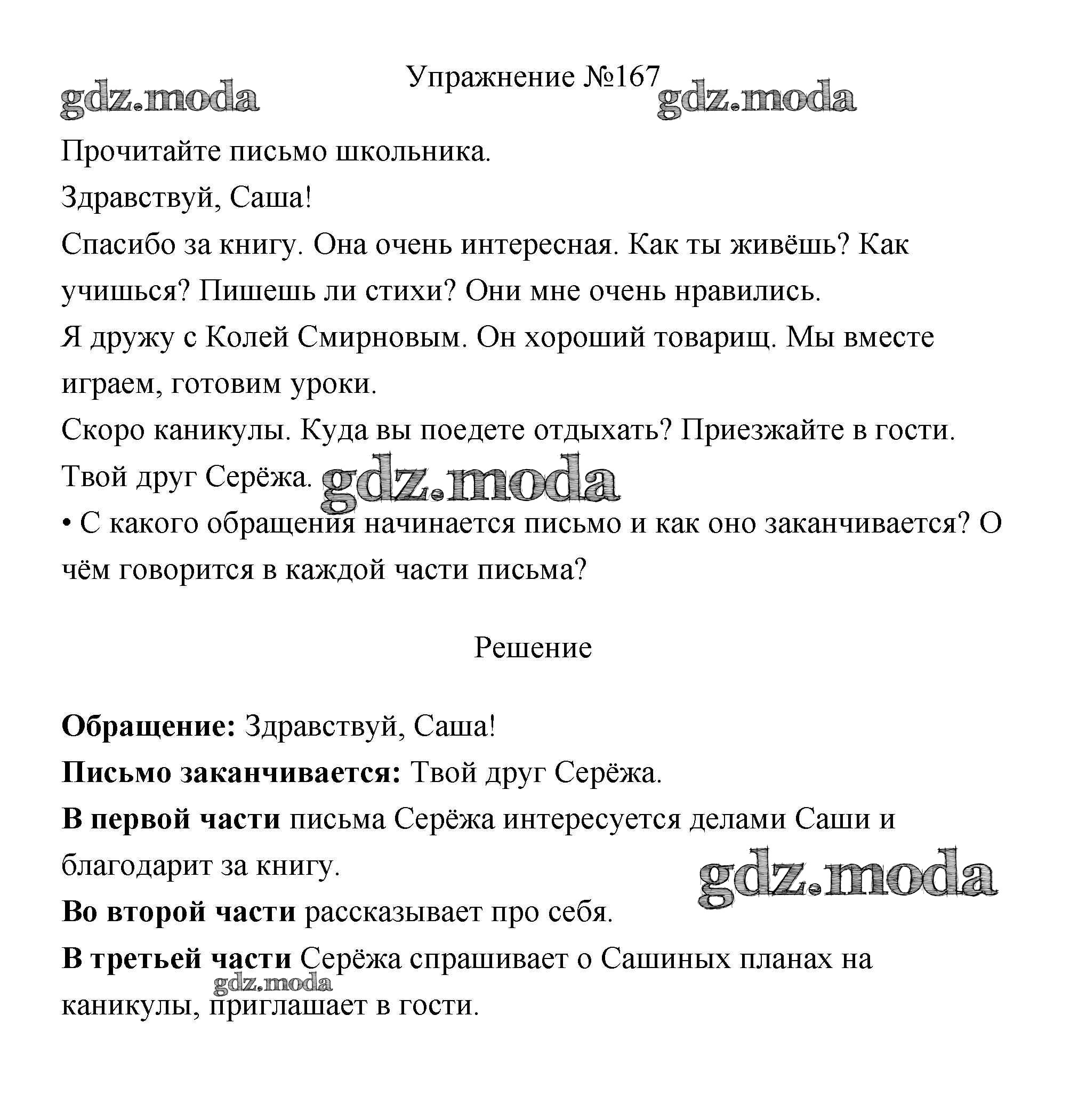решение к части 2 / упражнение № / 167
