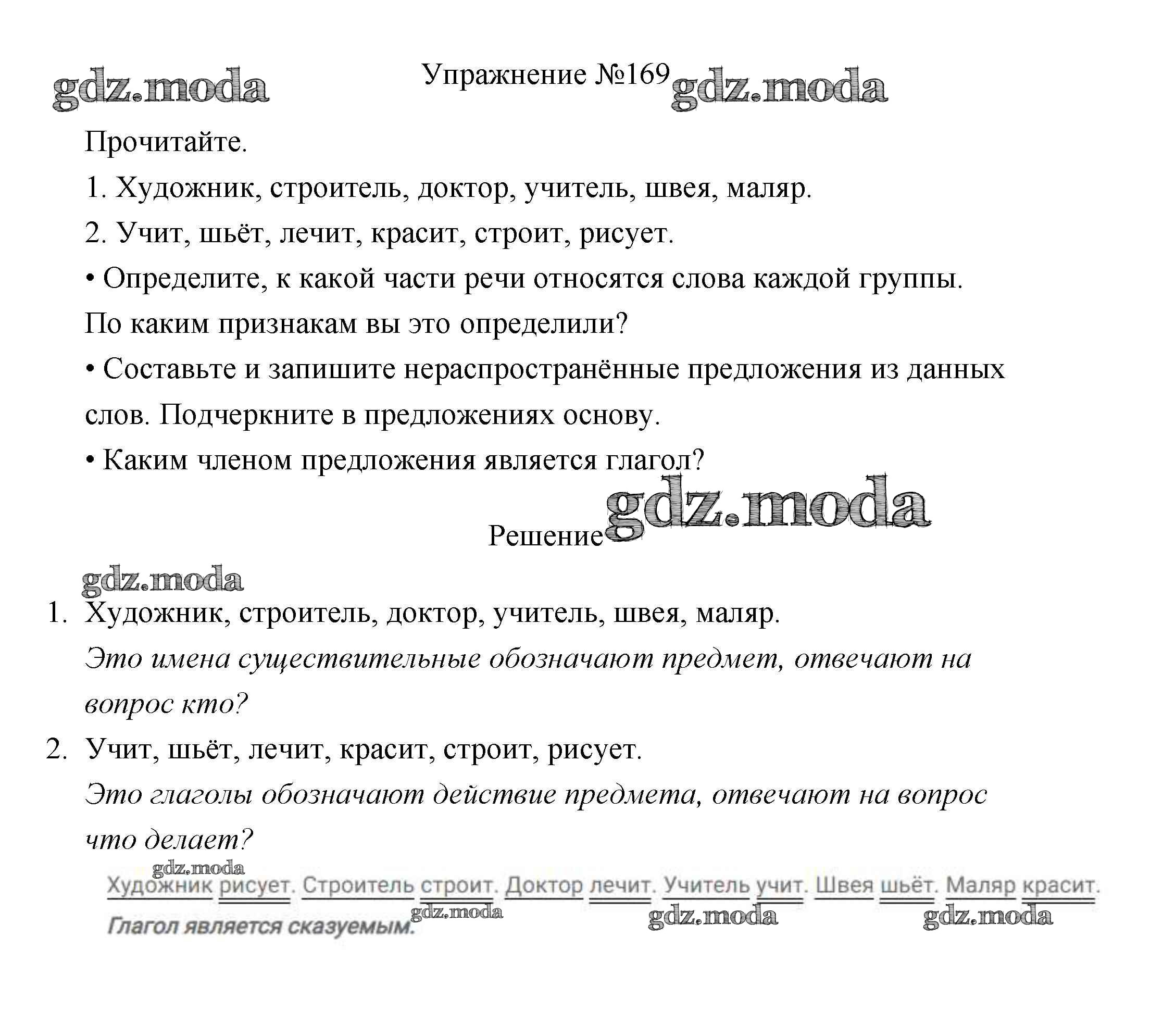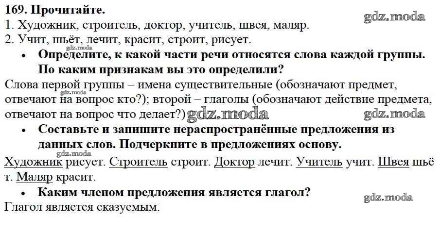 ОТВЕТ на задание № 169 Учебник по Русскому языку 3 класс Канакина Школа России
