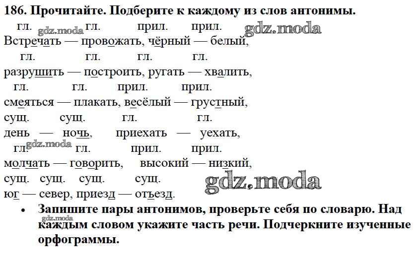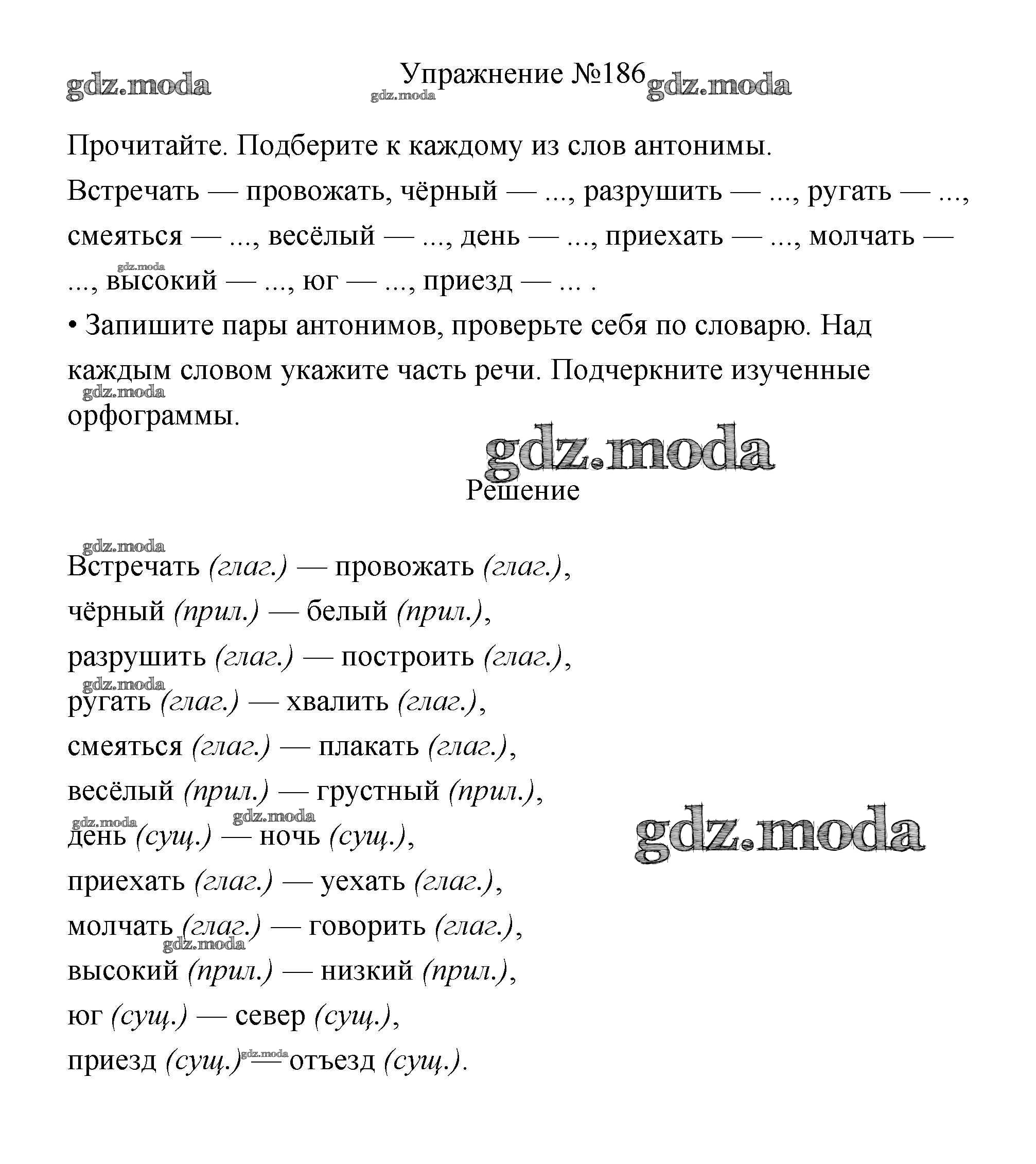 ОТВЕТ на задание № 186 Учебник по Русскому языку 3 класс Канакина Школа России