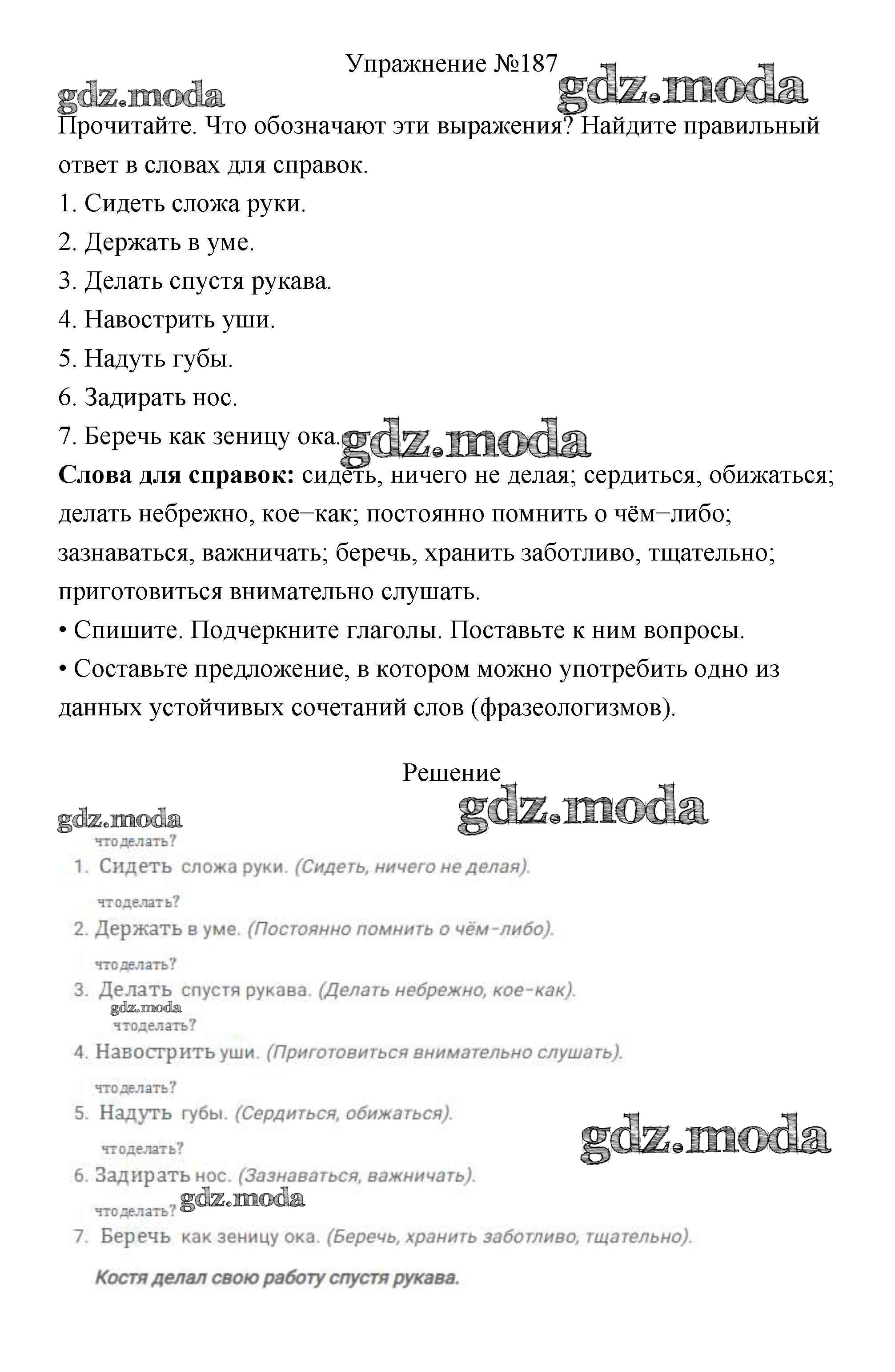 ОТВЕТ на задание № 187 Учебник по Русскому языку 3 класс Канакина Школа России