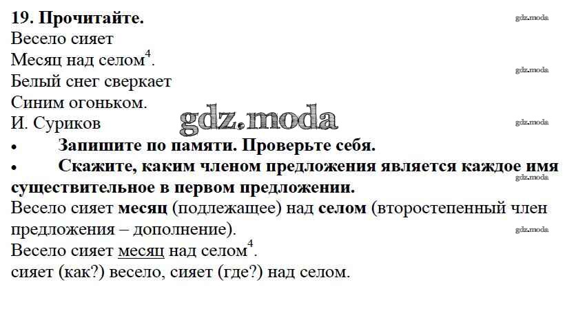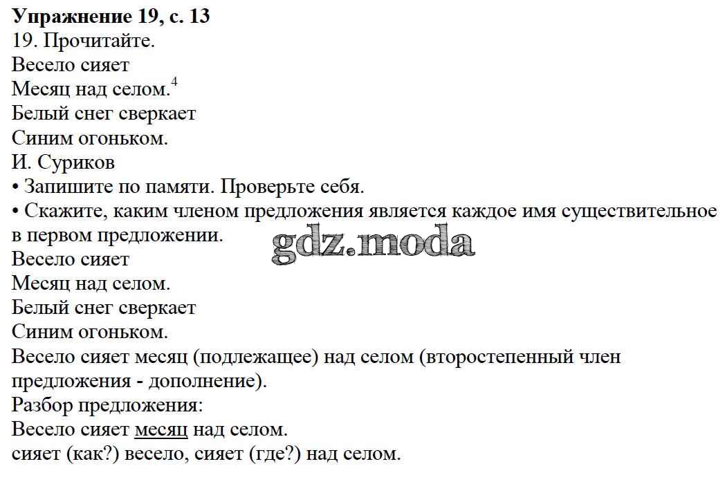 ОТВЕТ на задание № 19 Учебник по Русскому языку 3 класс Канакина Школа России