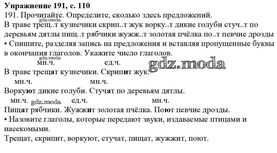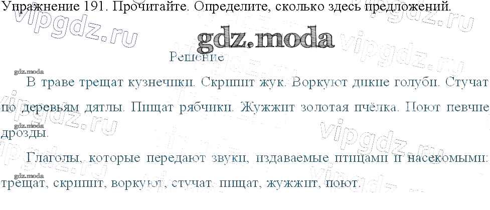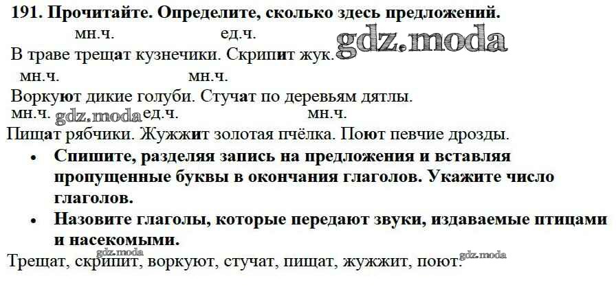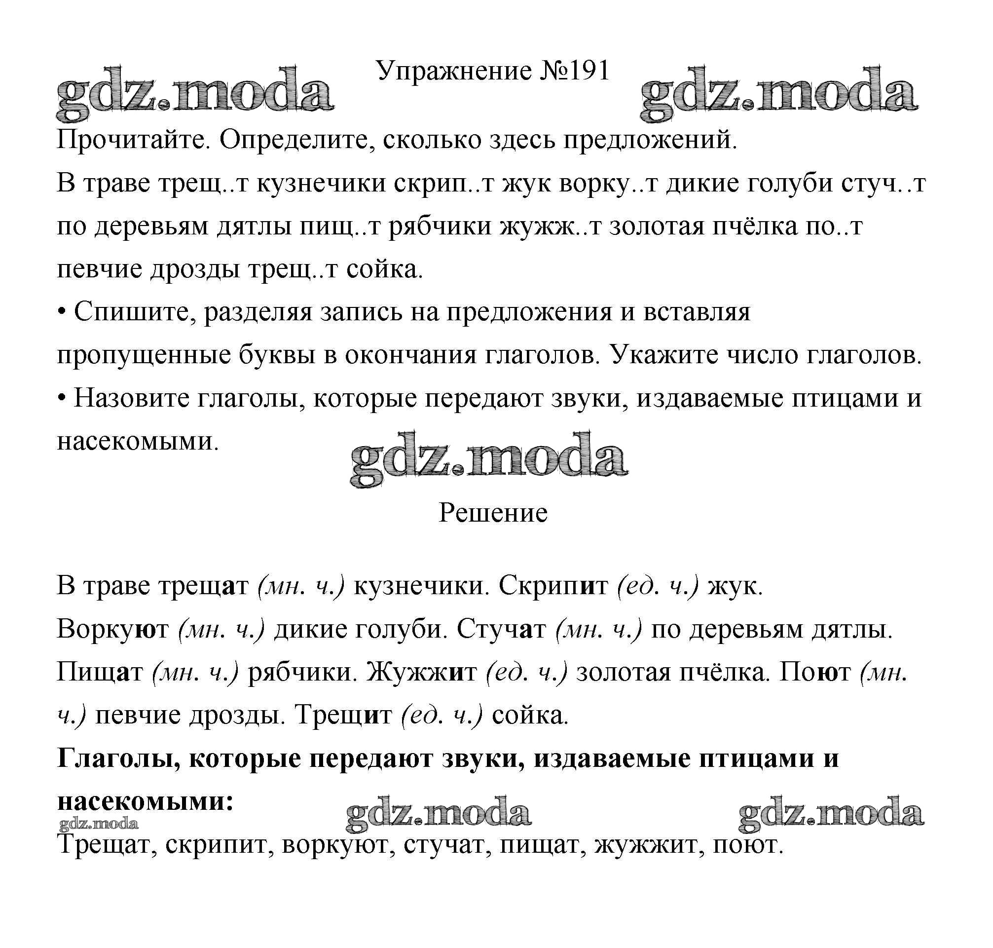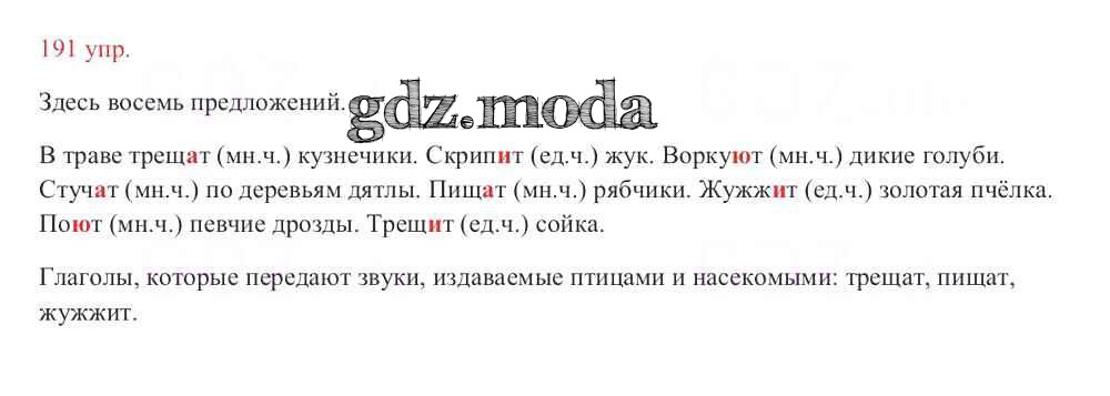 ОТВЕТ на задание № 191 Учебник по Русскому языку 3 класс Канакина Школа России
