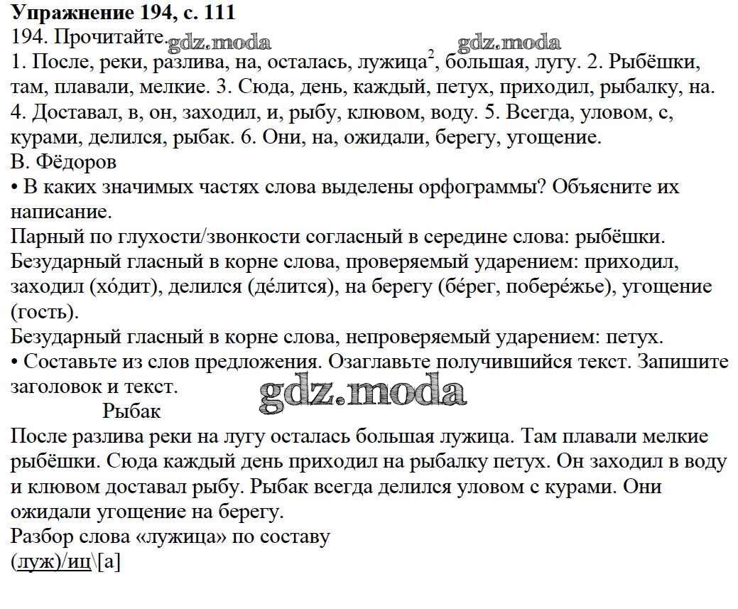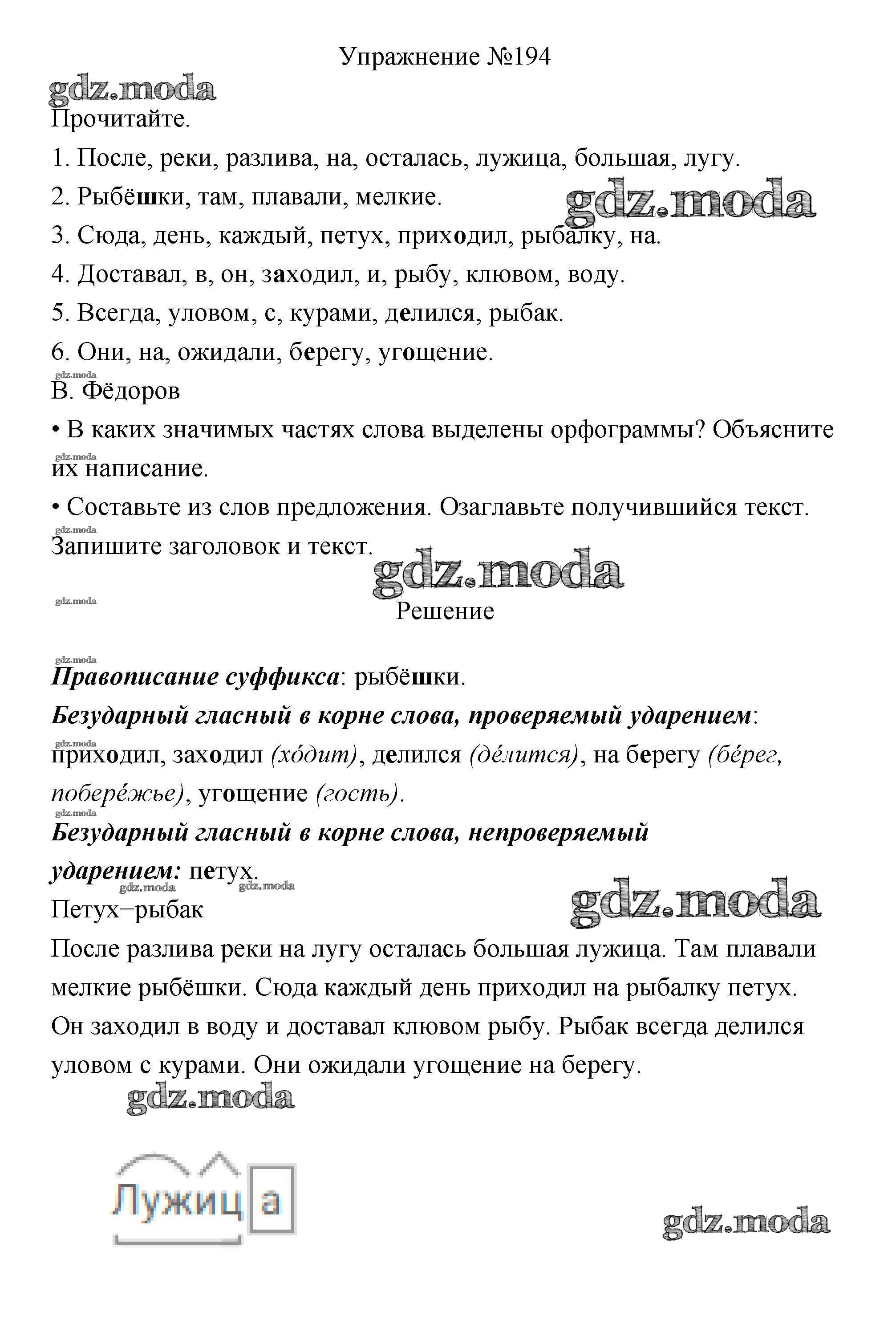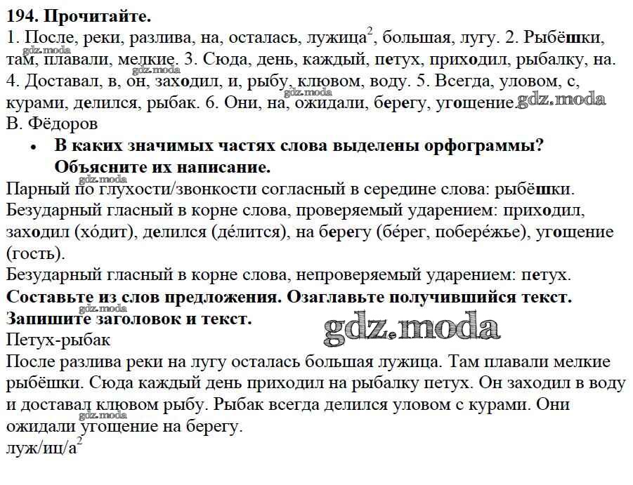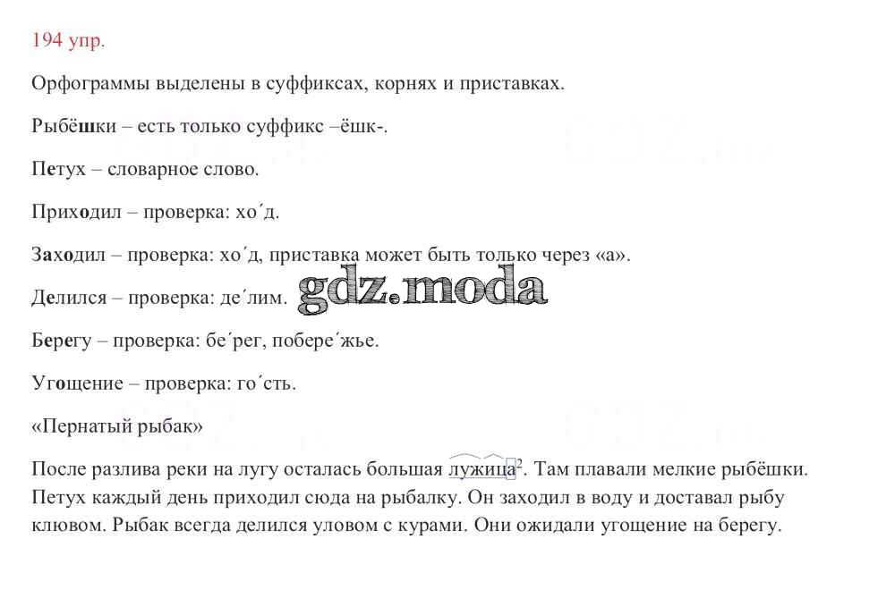 ОТВЕТ на задание № 194 Учебник по Русскому языку 3 класс Канакина Школа России