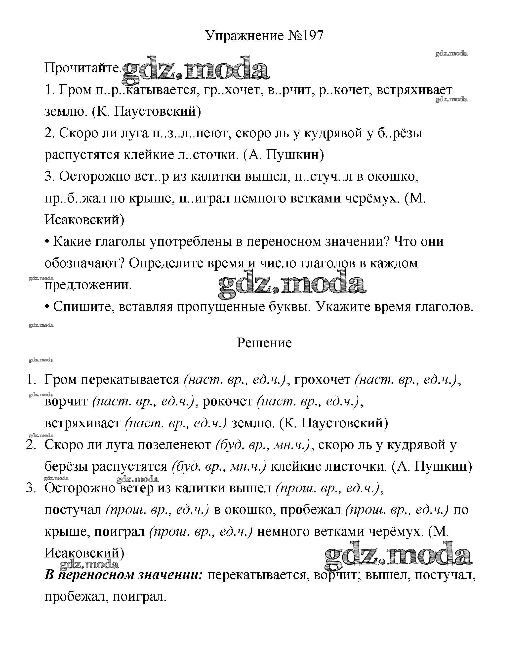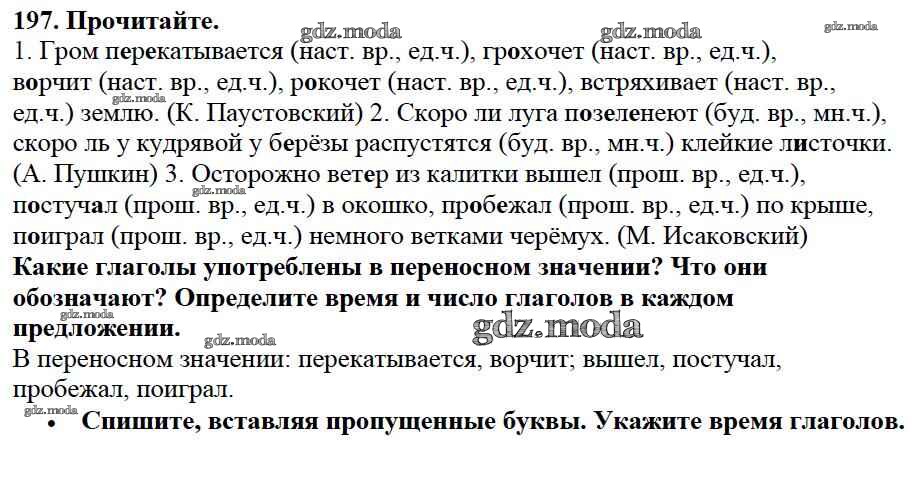 ОТВЕТ на задание № 197 Учебник по Русскому языку 3 класс Канакина Школа России