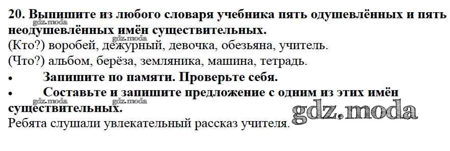ОТВЕТ на задание № 20 Учебник по Русскому языку 3 класс Канакина Школа России